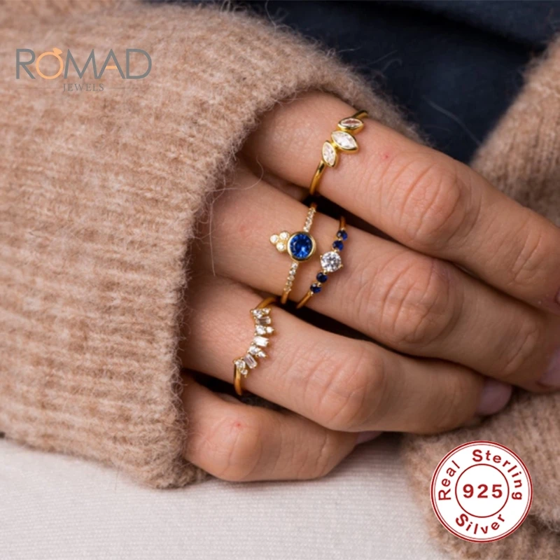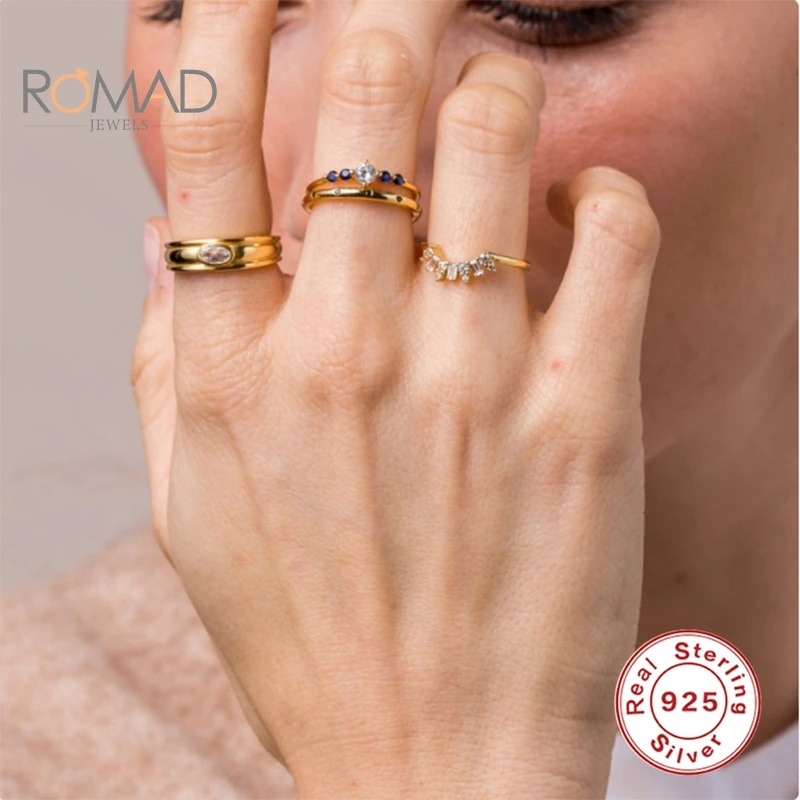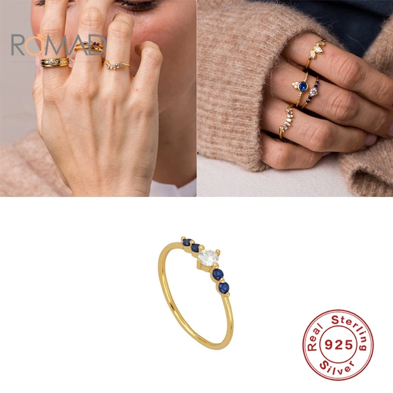 ROMAD женское кольцо золотого цвета, размер 6, 7, 8, новое серебро 925 пробы, простые кольца с синим цирконием для девочек, ювелирные изделия, подарки, Anillos Mujer