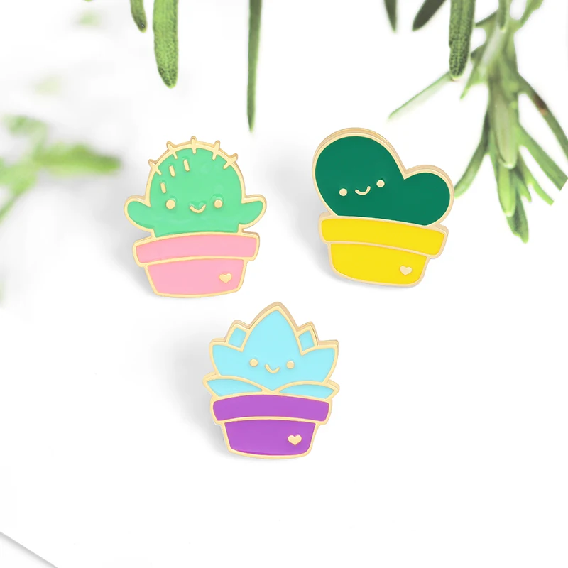 Завод детские эмали штырь пользовательские кактус суккулент мешочек для брошек штырь отворотом стильная футболка с изображением персонажей видеоигр значок, ювелирное изделие в подарок для детей друзей