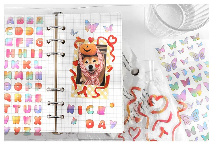 Милые наклейки из радужной ленты с цифрами, позолоченный декор для домашних животных, Бабочка, Дневник для скрапбукинга канцелярские принадлежности для альбома, эстетический