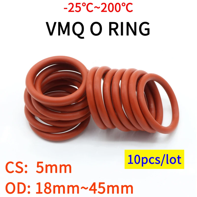 10 шт. VMQ красное Силиконовое уплотнительное кольцо CS 5 мм OD 18 45 мм пищевая класс Водонепроницаемая Резиновая Изолированная круглая Уплотнительная Прокладка O-образной формы