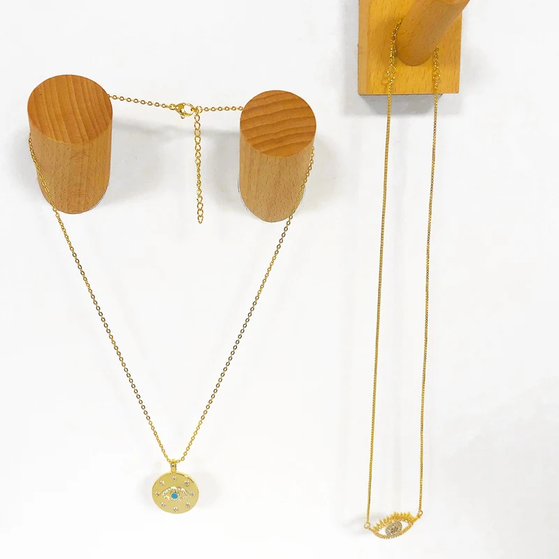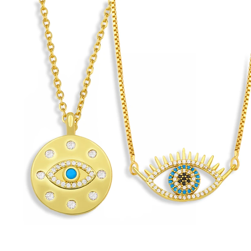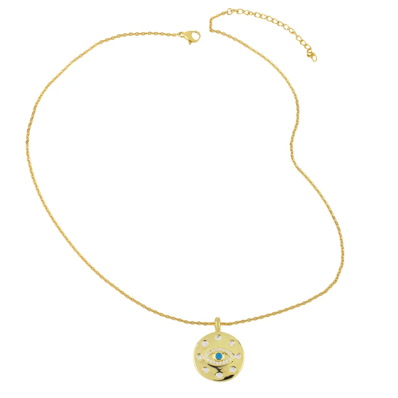 Золотое ожерелье FLOLA от сглаза для женщин, круглое синее ожерелье с цепочкой до ключиц под глаз, кулон с цирконием, турецкий глаз, ювелирные изделия, подарки nkes88
