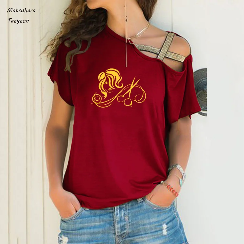 Футболка женская с мультяшным принтом, Повседневная тенниска в стиле Харадзюку, с ножницами, большие размеры 5XL, d