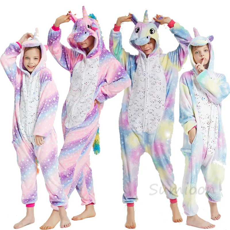 Пижама-Кигуруми для мальчиков и девочек, фланелевая, с единорогом