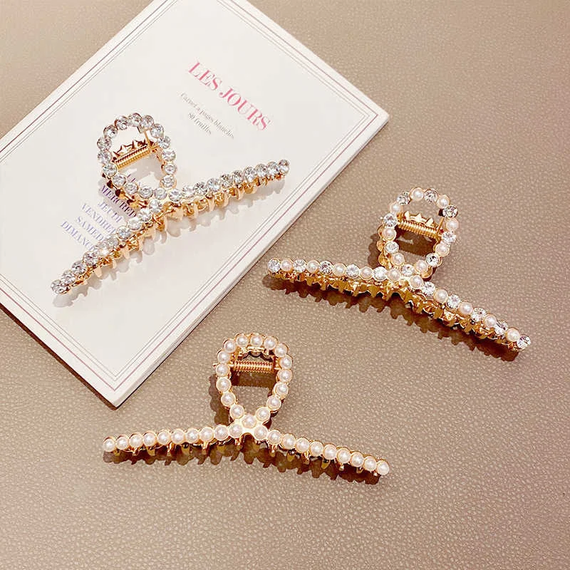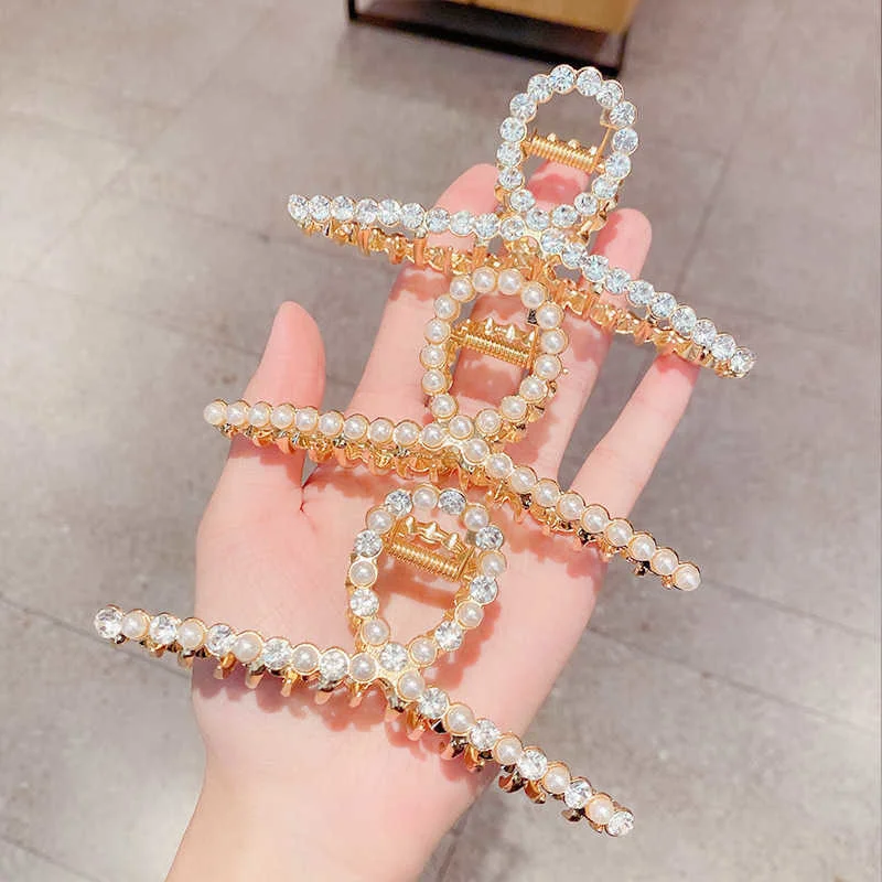 Корейские женские заколки для волос с жемчужинами и кристаллами, Модные металлические заколки для волос с перекрестными бусинами для женщин, элегантные аксессуары для волос, заколки для волос