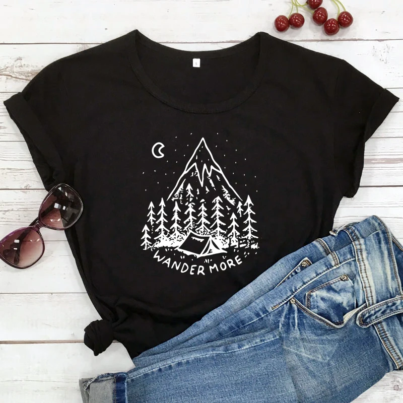 Женская футболка с коротким рукавом Wonder More, Винтажная летняя футболка с принтом гор и природы