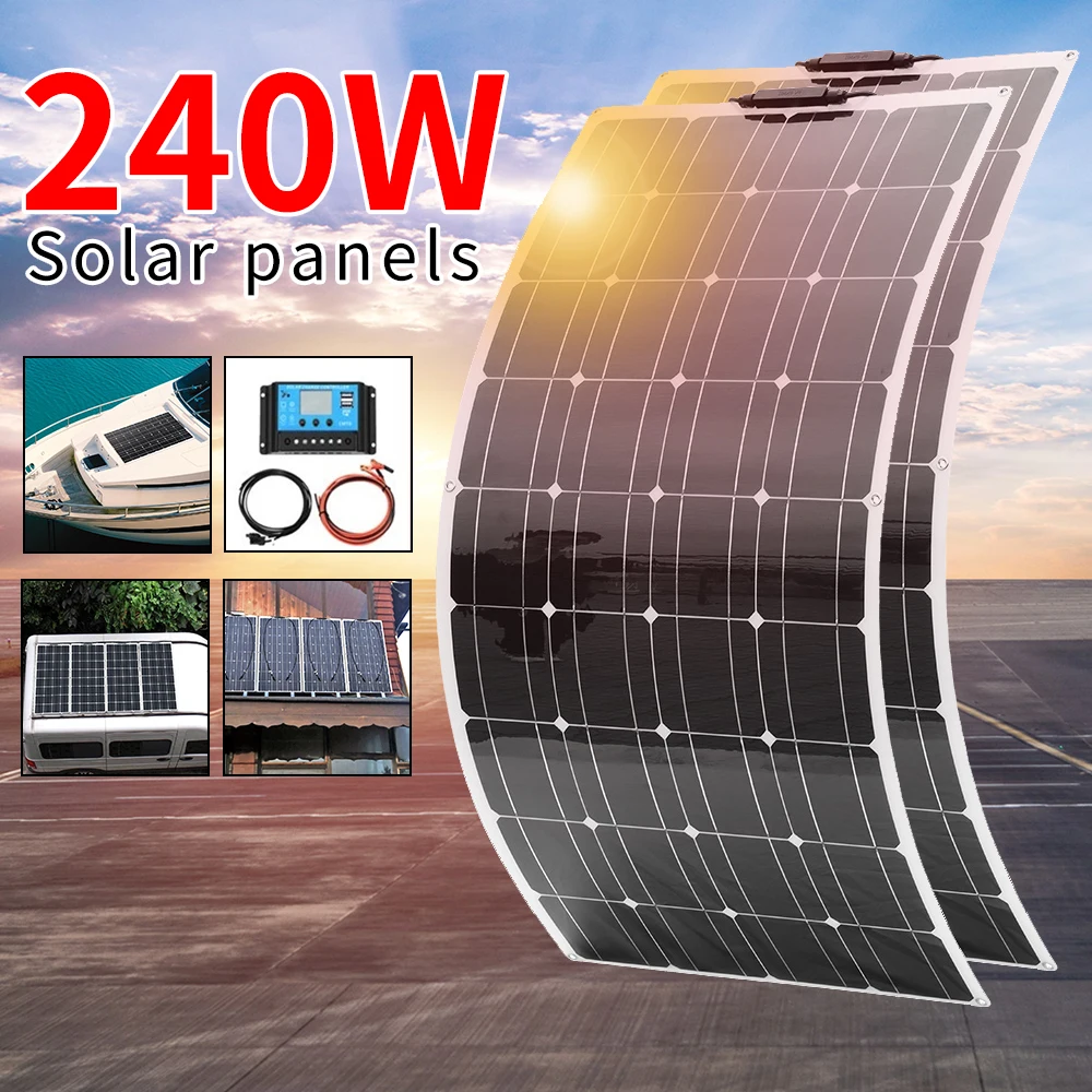 Комплект гибкой солнечной панели 240 Вт, полный комплект для домашнего автофургона с инвертором 1000 Вт, контроллер 20 А, зарядное устройство для аккумуляторов 12 В24 В