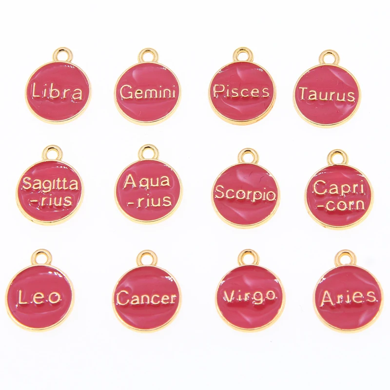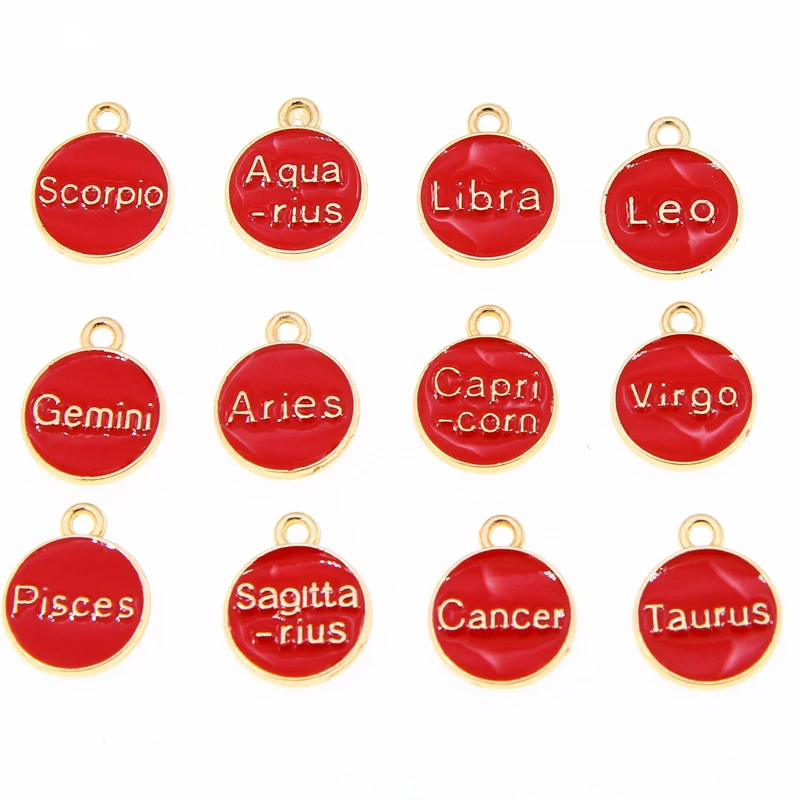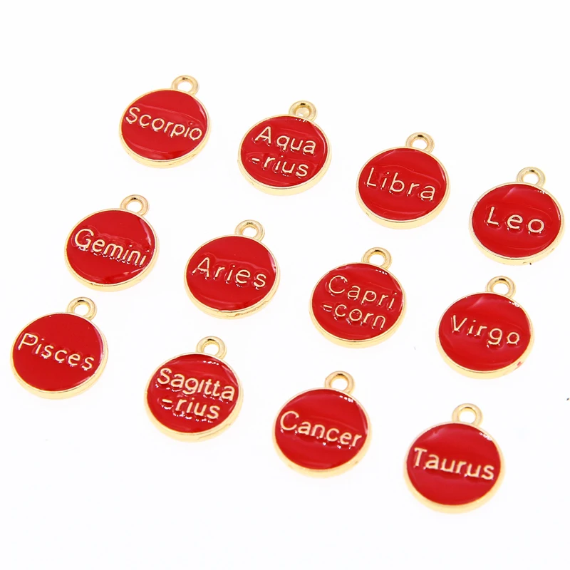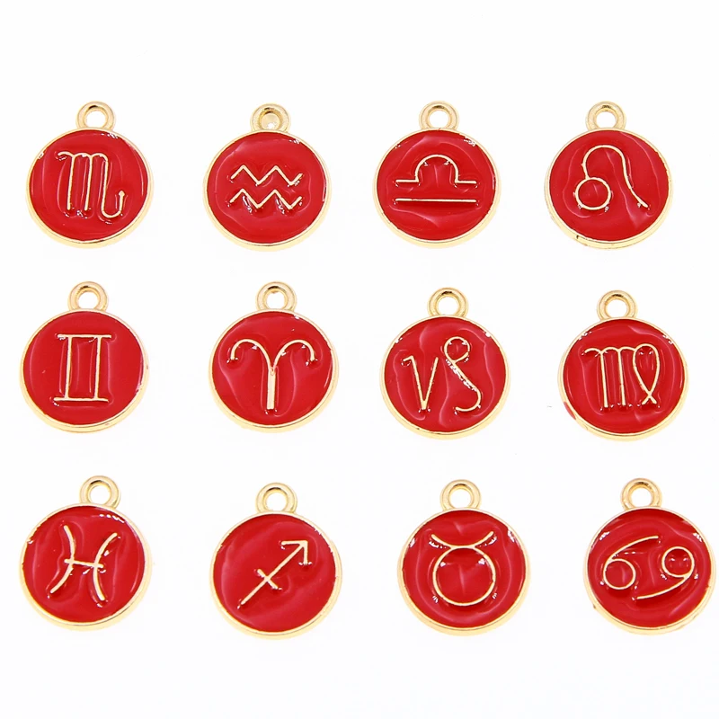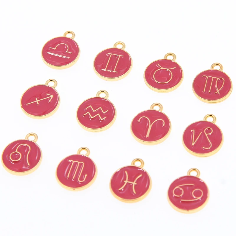 12 шт.компл. металлического сплава Большой Красно-розовый Броши с красной эмалью в виде знаков Зодиака Подвески Diy ручной работы ювелирные изделия аксессуары