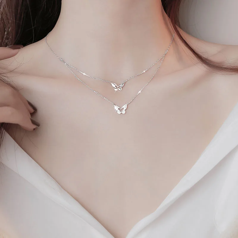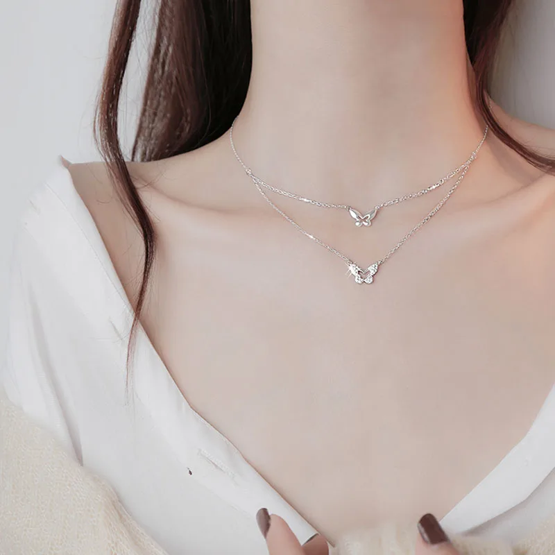 Женское Двухслойное ожерелье ANENJERY, серебряное ожерелье с бабочк...