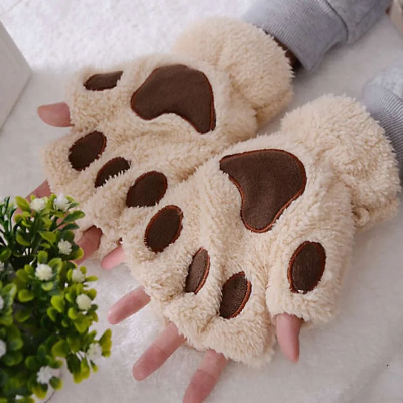 Перчатки женские, плюшевые, без пальцев, теплые, кошачья лапа с когтями