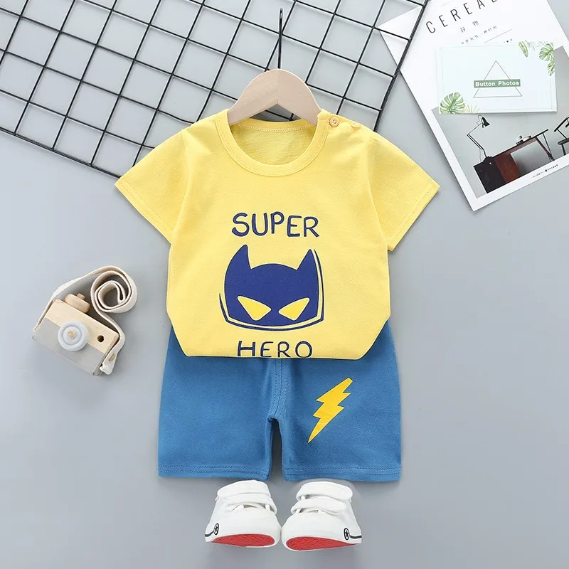 Хлопковый Детский костюм с коротким рукавом, детские летние шорты и...