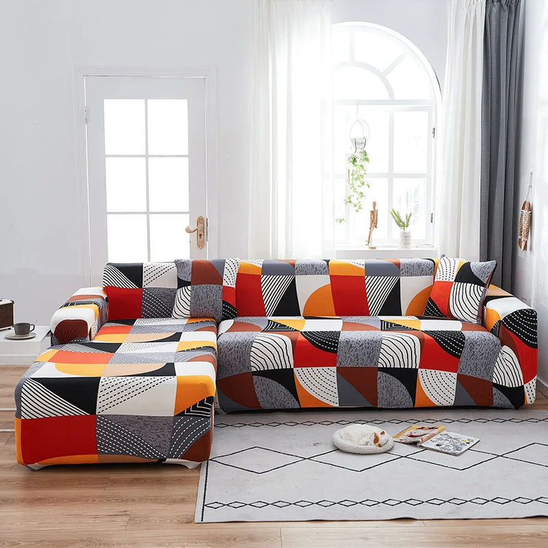 Чехол для дивана, 1234 мест, стрейчевый, с геометрическим рисунком