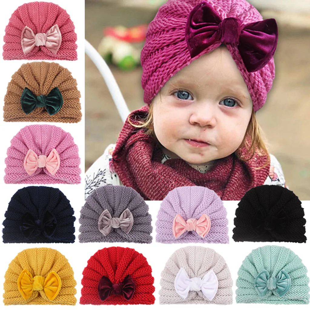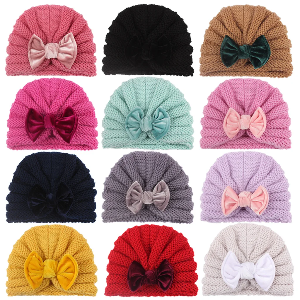 Шапка-тюрбан для девочек, мягкая, бархатная, однотонная, на день рождения