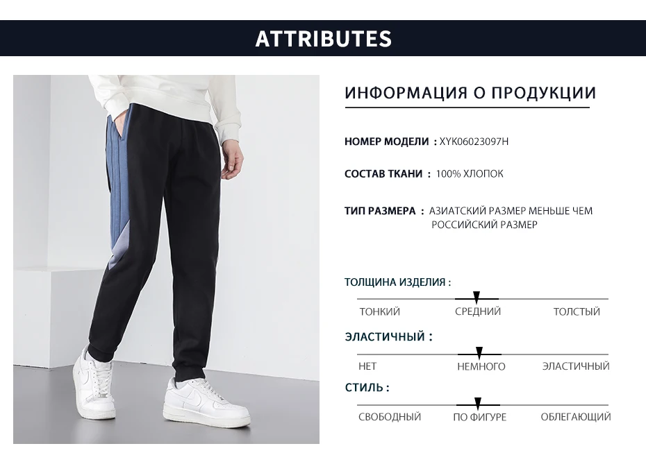 Мужские спортивные штаны Pioneer Camp, 100% хлопок, зимняя уличная одежда в стиле хип-хоп, черные, синие повседневные брюки для мужчин XZR023182