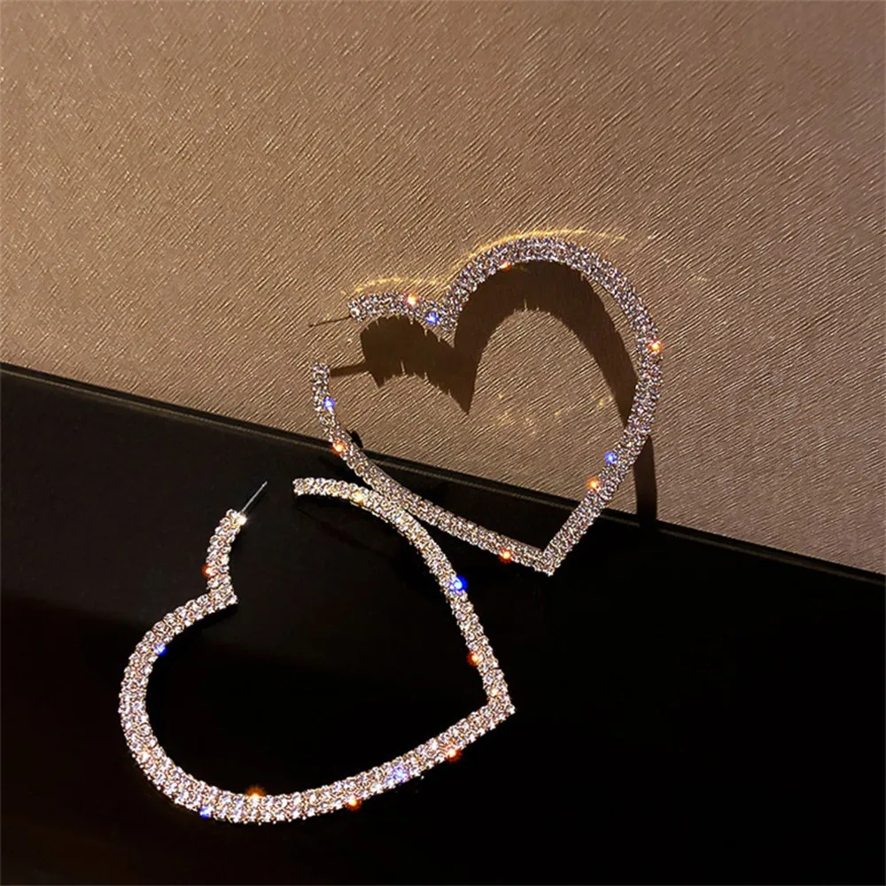 Серьги-кольца модный, элегантный, Кристальный для ушей, модные висячие украшения больших размеров в форме сердца, украшения для ушей, Свадебная и вечерняя бижутерия