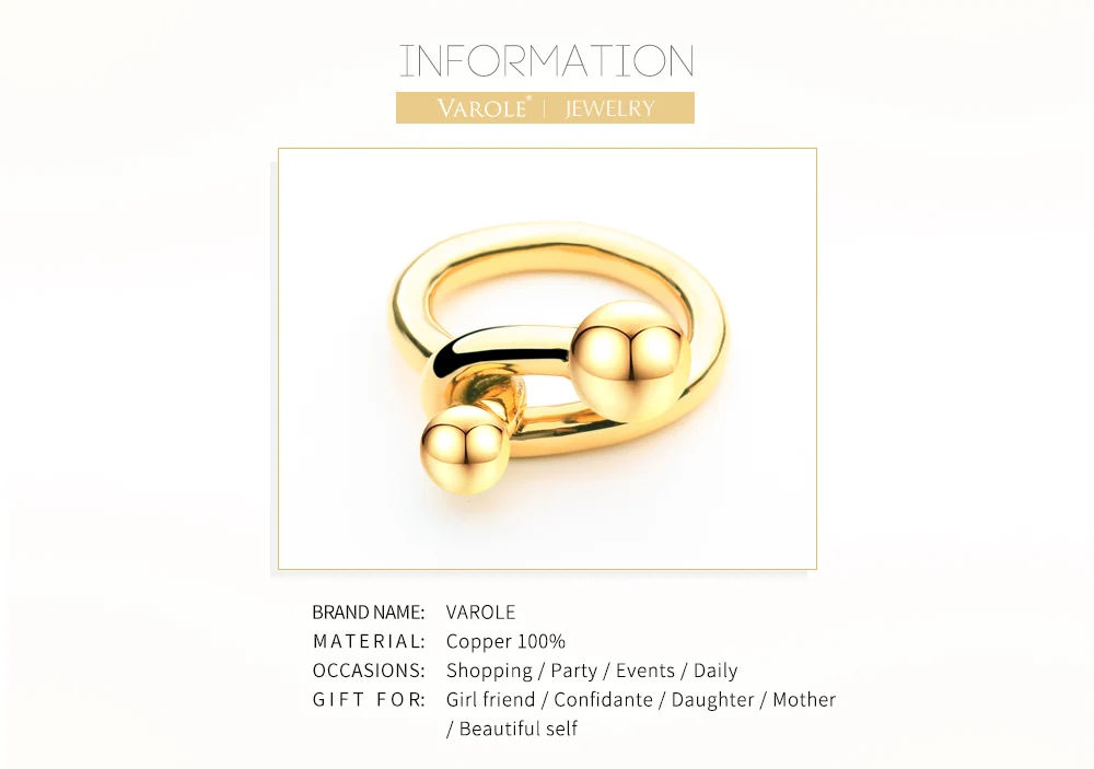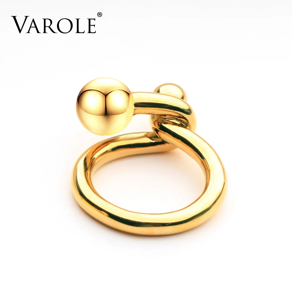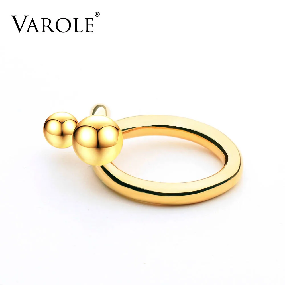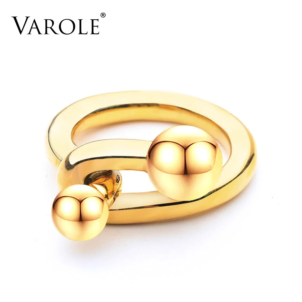 Кольцо VAROLE в стиле панк женское с двумя шариками, простые линии и двойные кольца золотого цвета, бижутерия, шикарный подарок, 2021