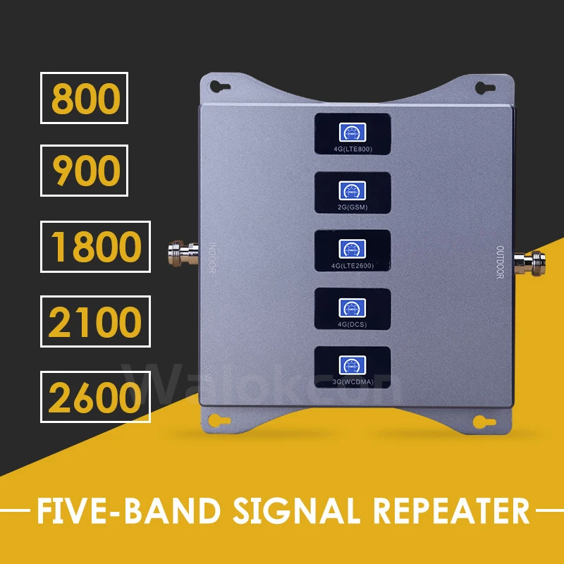 Пятидиапазонный усилитель сигнала, ретранслятор 2g, 3g, 4g, 5 диапазонов B20, B8, B3, B1, B7, 800, 900, 1800, 2100, 2600, все европейские страны