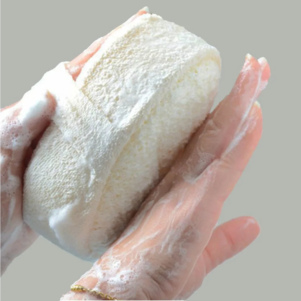 Используйте луфу с любимым жидким или барным мылом, которое помогает высушить кожу, удалить неровность, стимулирует кровообращение и делает кожу гладкой.