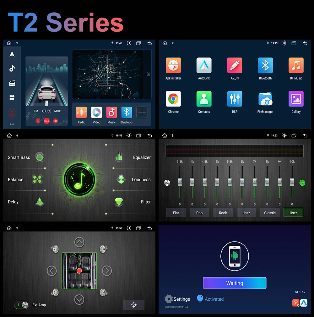 Настройки эквалайзера DSP, вы можете установить звуковое поле, установить громкость, тон и диапазон для разных мест, настроить звук на месте и дать вам идеальный опыт прослушивания.Bluetooth 5,0 Поддержка bluetooth handsfree/Телефонная книга/телефонный звонок/музыка.