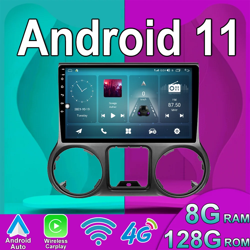 Android 11 для Jeep Wrangler 3 JK 2011 - 2014 LHD RHD автомобильное Стерео Радио мультимедийный видеоплеер навигация GPS беспроводной Carplay