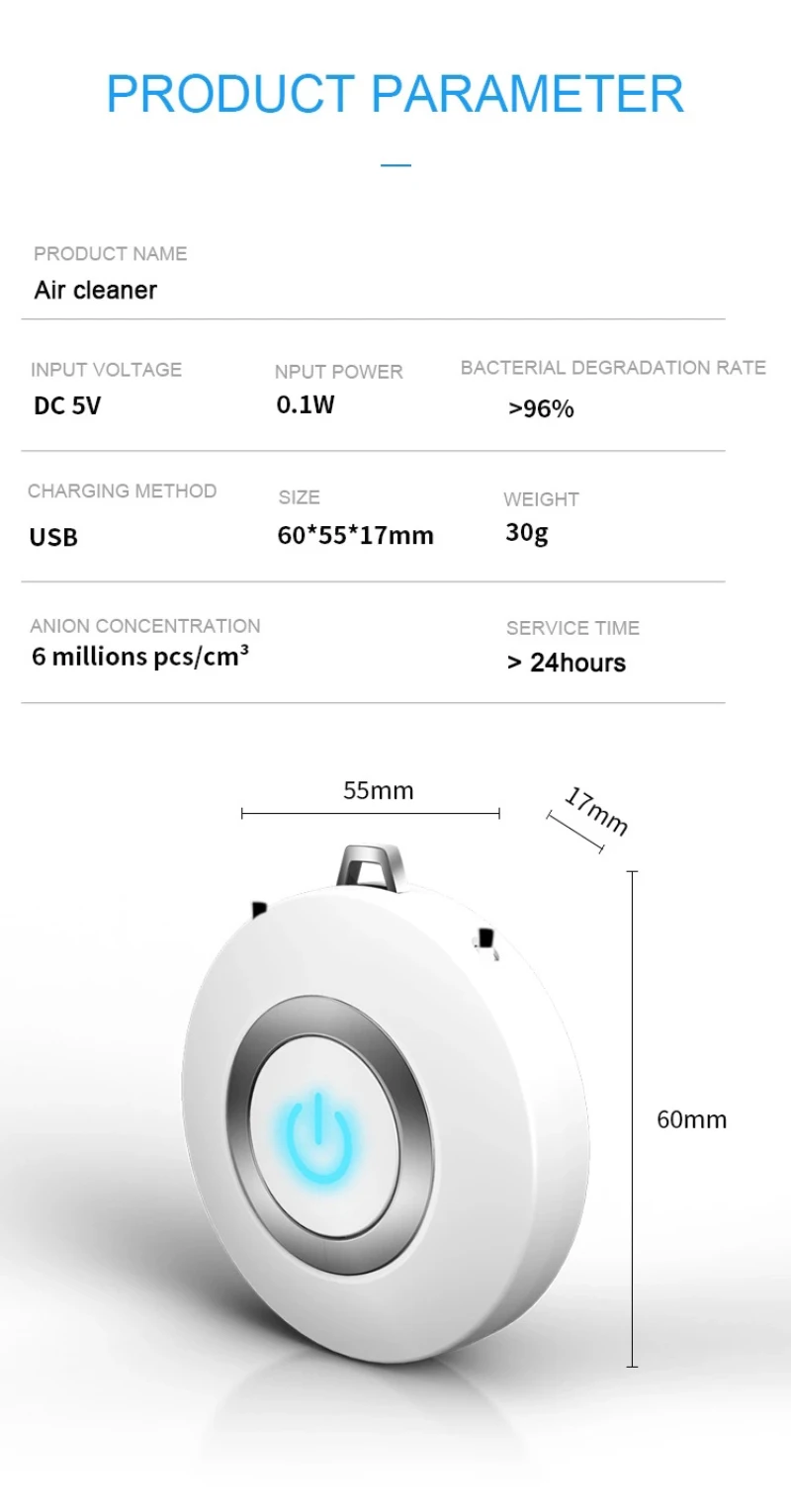 Отрицательная ионная концентрация: 20 миллионов шт/кубический сантиметр