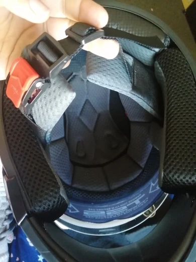 Шлем получил с ремнем отдельно. Невозможно отремонтировать точечные характеристики. Шлем был бесполезен и дал кредит около 3 $. И запах шлема действительно плохой