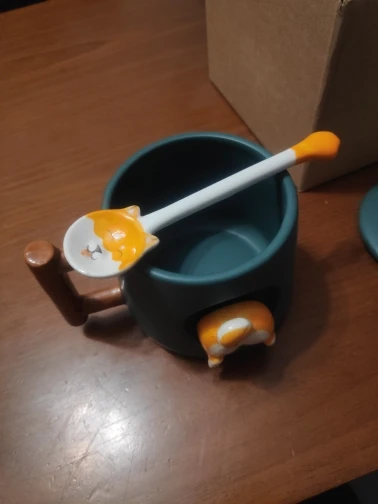 Люблю кружку, хотя я был разочарован, как я думал сзади. У меня будет бум собаки. Собака выходит только спереди, но она все еще милая и ложка милая. Очень плотно сидит. Ничего не сломано