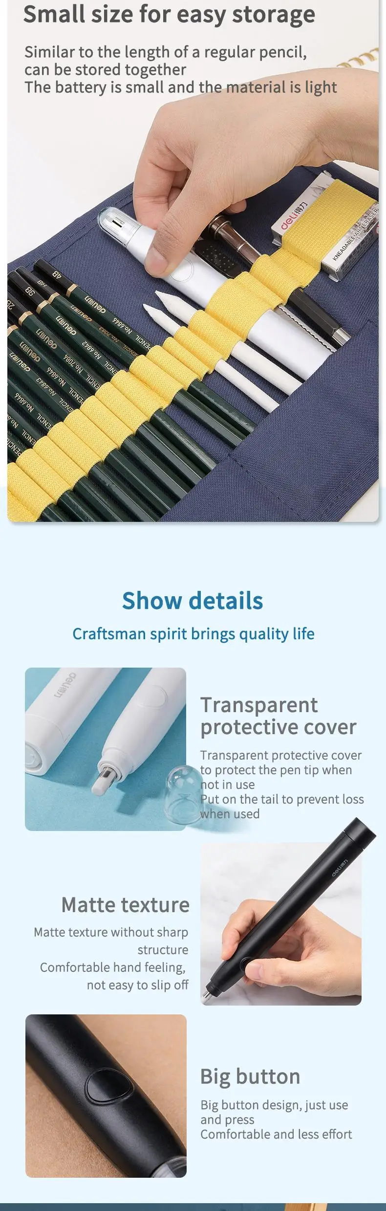 Ластик-карандаш DELI резиновый Электрический для рисования, электронные ластики, сменные принадлежности для детей, студентов, школы, офиса