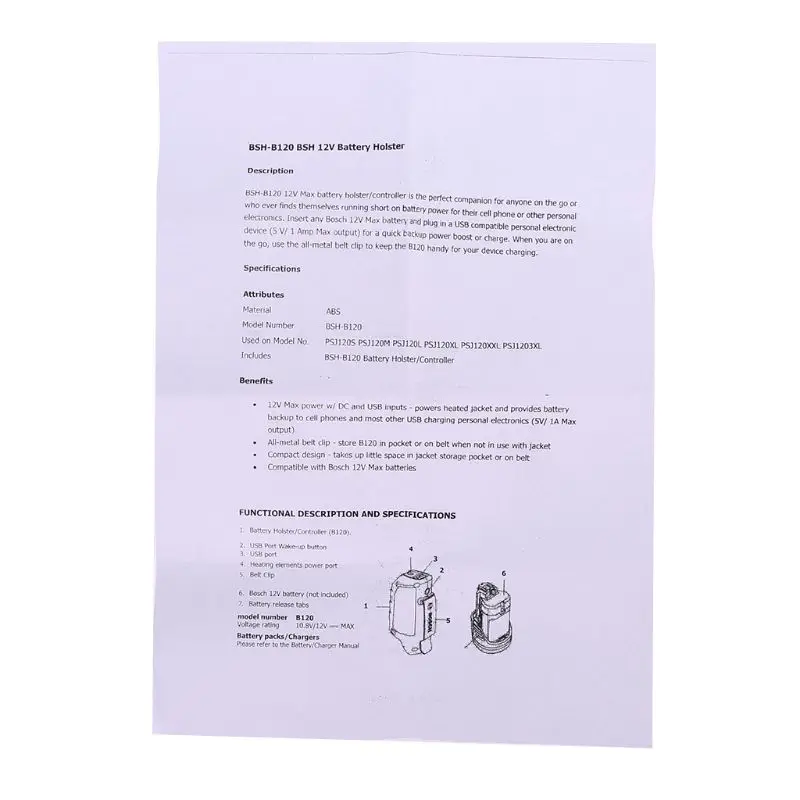 OOTDTYЭта аккумуляторная кобура/адаптер 12V Max является идеальным компаньоном для тех, кто находится на ходу или когда-либо не работает от аккумулятора для своего сотового телефона или другой личной электроники. Вставьте любой аккумулятор Bosch 12V Max и подключите к USB совместимому персональному электронному устройству (макс. выход 5 В/1 Ампер) для быстрого резервного увеличения мощности или зарядки. Когда вы находитесь в пути, используйте металлический зажим для ремня, чтобы держать B120 под рукой для зарядки вашего устройства.
