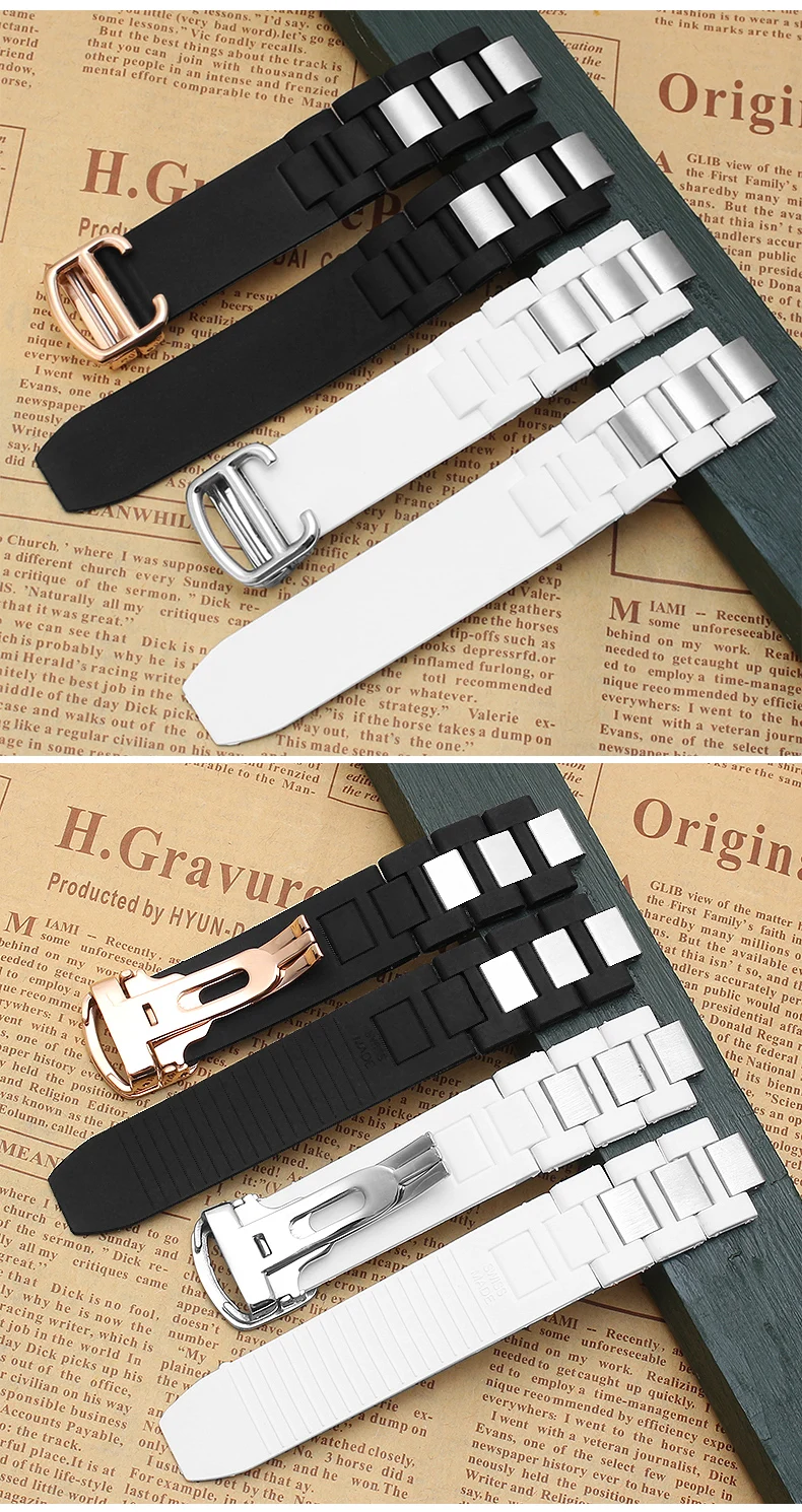 20 мм * 10 мм черный замена силиконовый резиновый ремешок для наручных часов для Cartier 21 Chronoscaph W10198U2 W10125U2 W10197U2 W10184U2