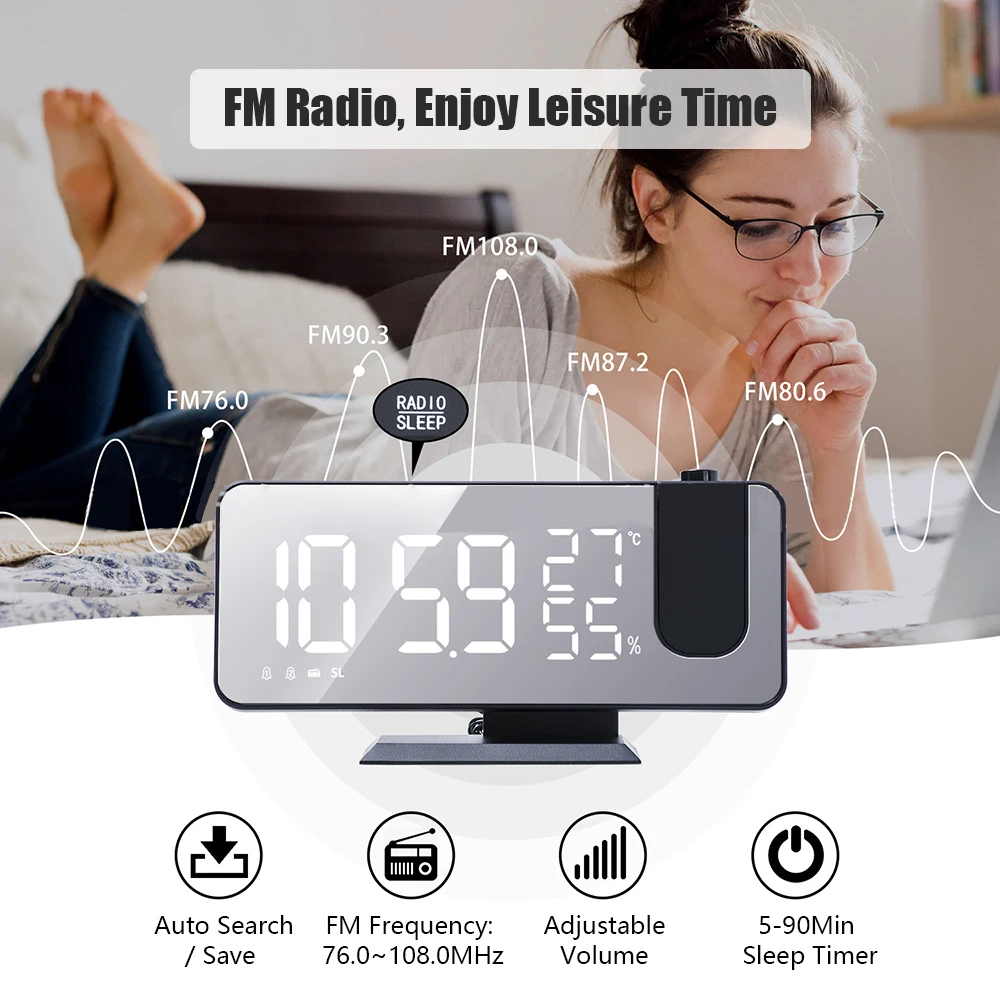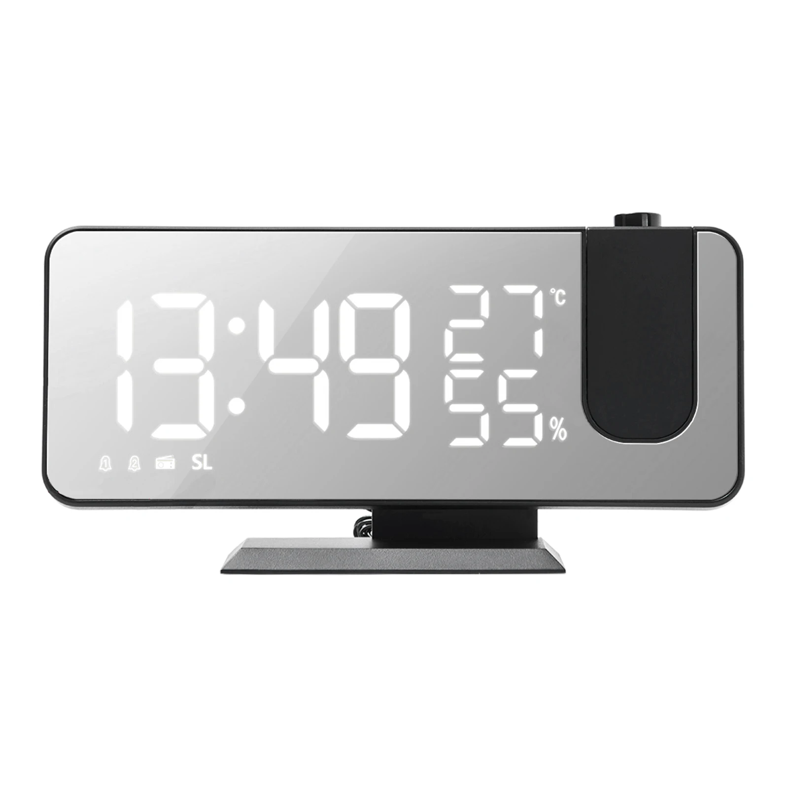 Цифровые настольные часы с FM-радио, часы с двойсветодиодный светодиодной проекцией, электронные настольные часы с функцией повтора температуры и влажности