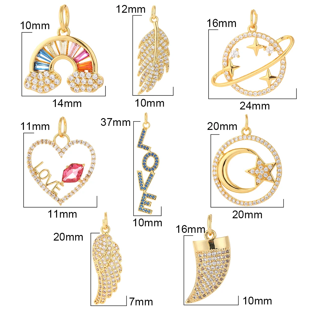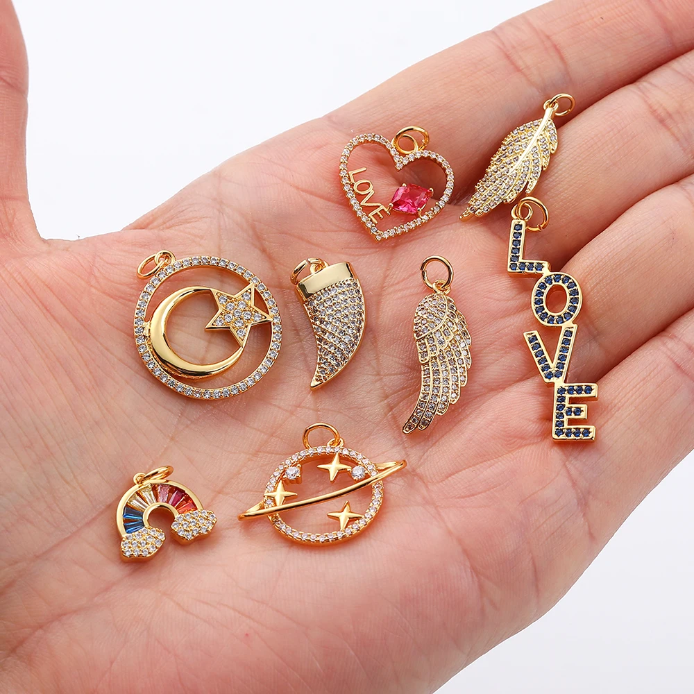 Радужные любовные буквы перо и Луна ювелирные изделия золотые красивые подвески шармы дизайнерские золотые небесные планеты природные шармы
