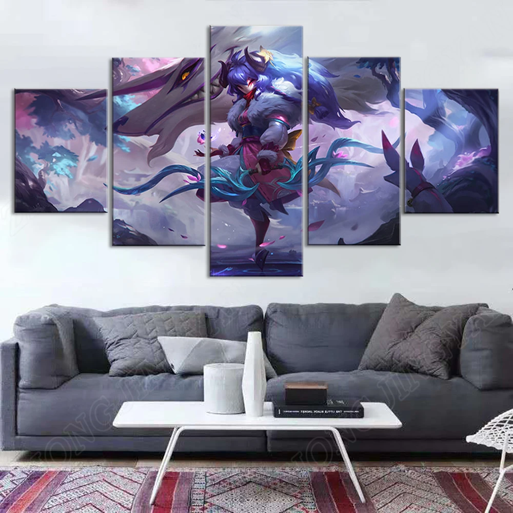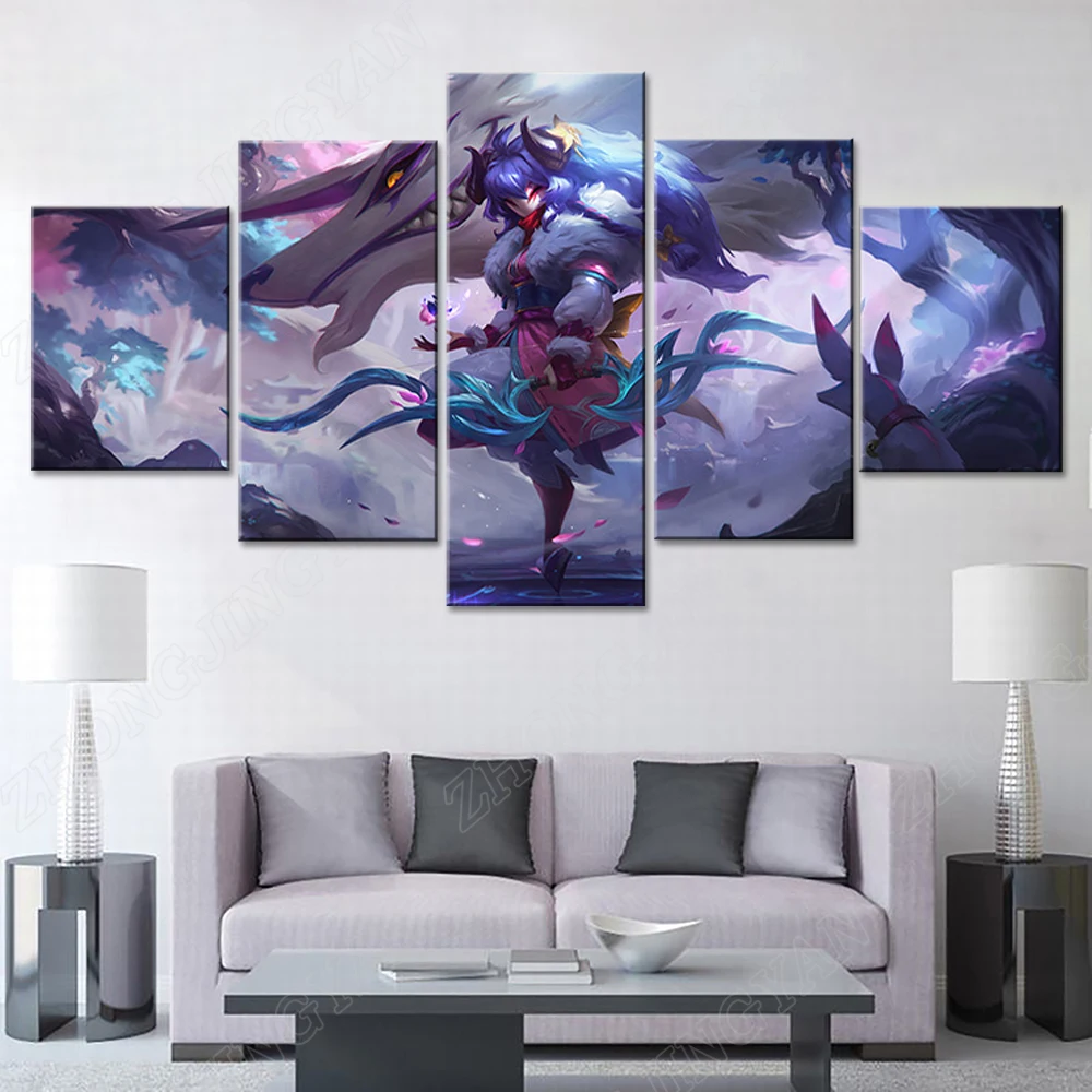 Картина для домашнего декора, 5 панелей, картина из игры Лига Леген...