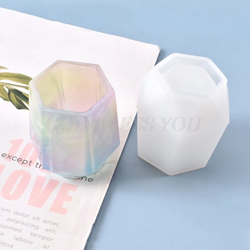 DIY шестигранный держатель для ручки, силиконовая форма, контейнер для хранения, инструмент для изготовления кристаллов эпоксидная смола, форма