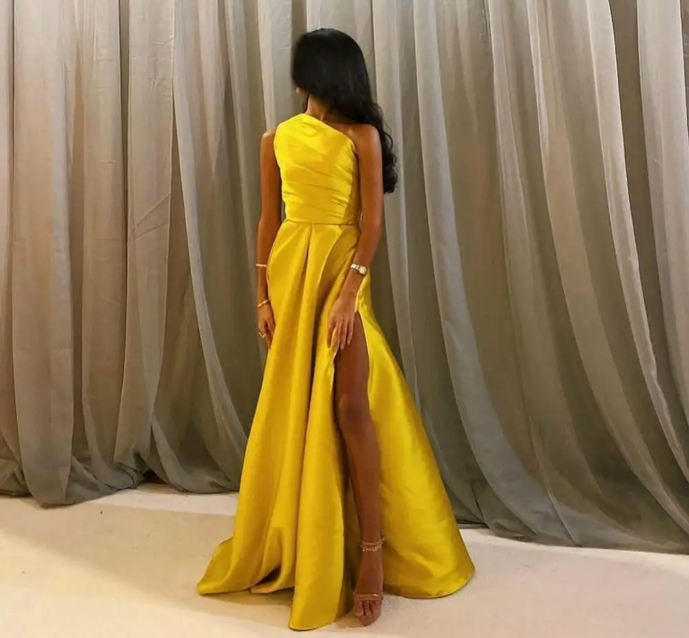 Элегантные шифоновые длинные вечерние платья на одно плечо с разрез...
