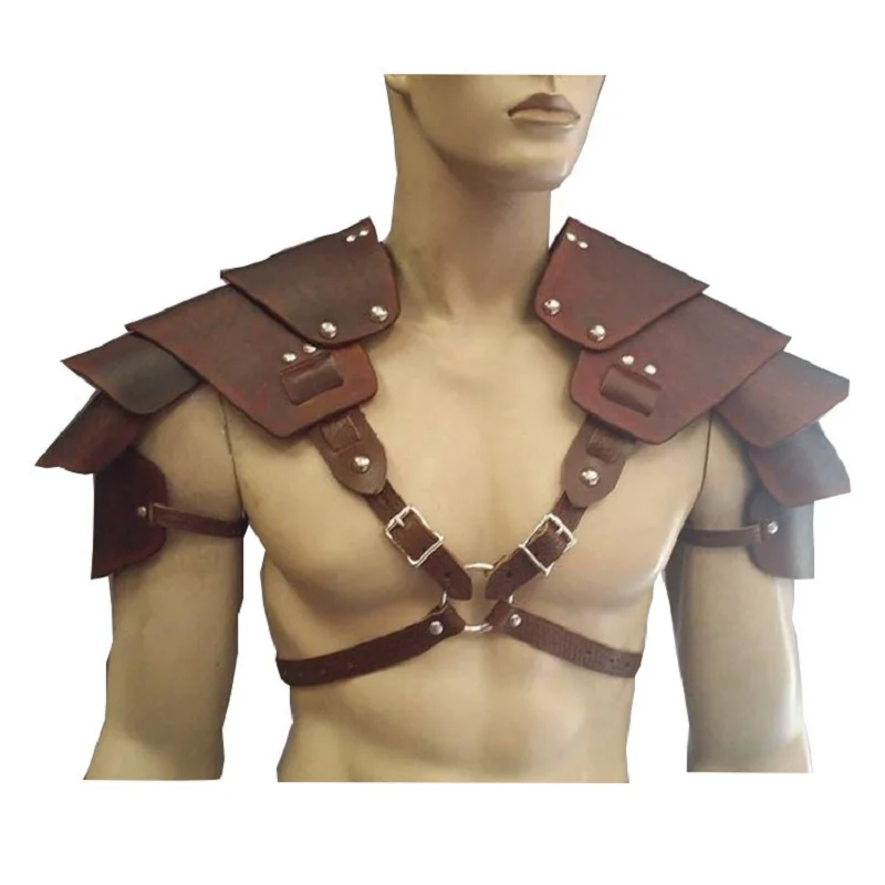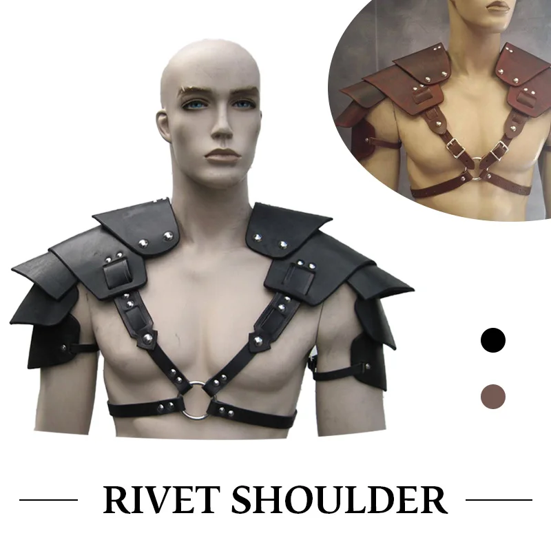 Мужской средневековый костюм, аксессуар для косплея, винтажный Готический рыцарь-воин, Наплечные ремни из искусственной кожи, панк-заклепки Pauldrons
