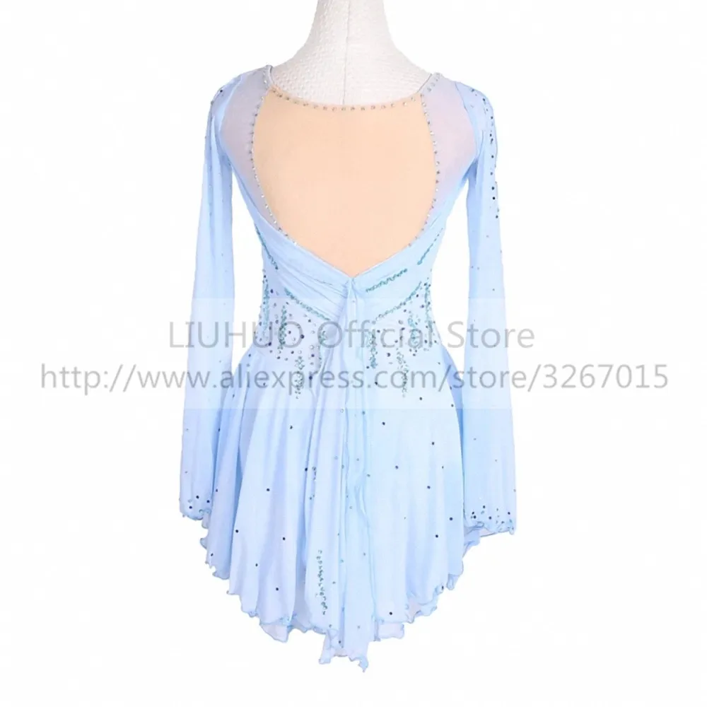 Женское трико LIUHUO с длинным рукавом для занятий художественной гимнастикой для девочек и взрослых, синее платье для катания на коньках
