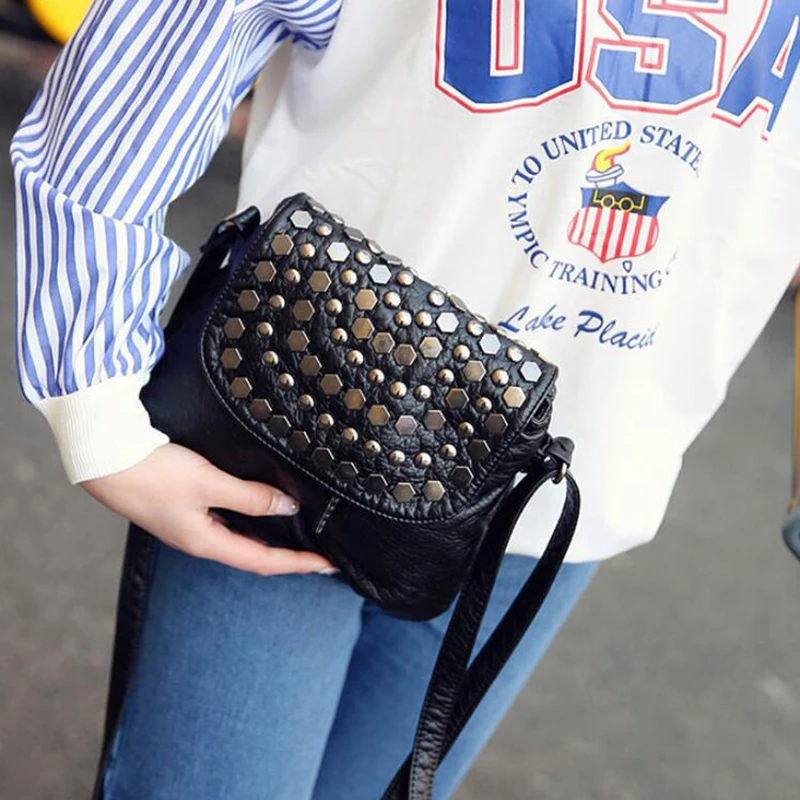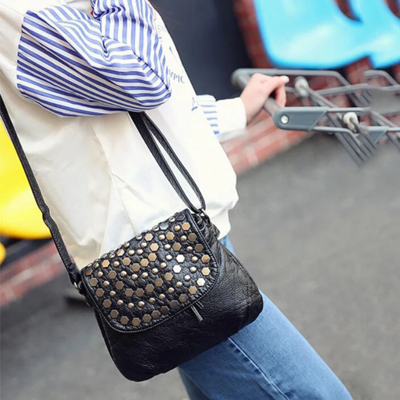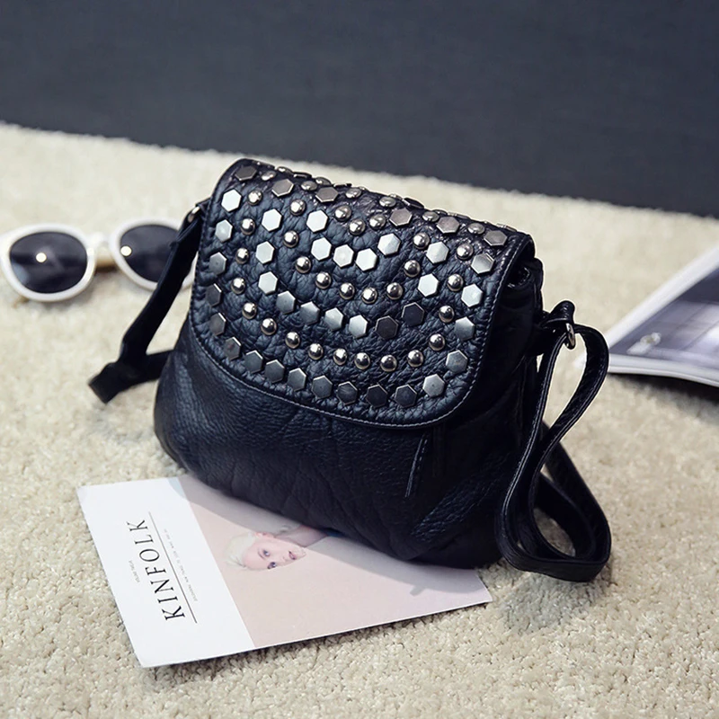 Зимняя черная Наплечная Сумка с заклепками для женщин, сумка-мессенджер из искусственной кожи, новинка 2022, сумка через плечо, повседневная дамская сумочка, Повседневная сумка, Bolso