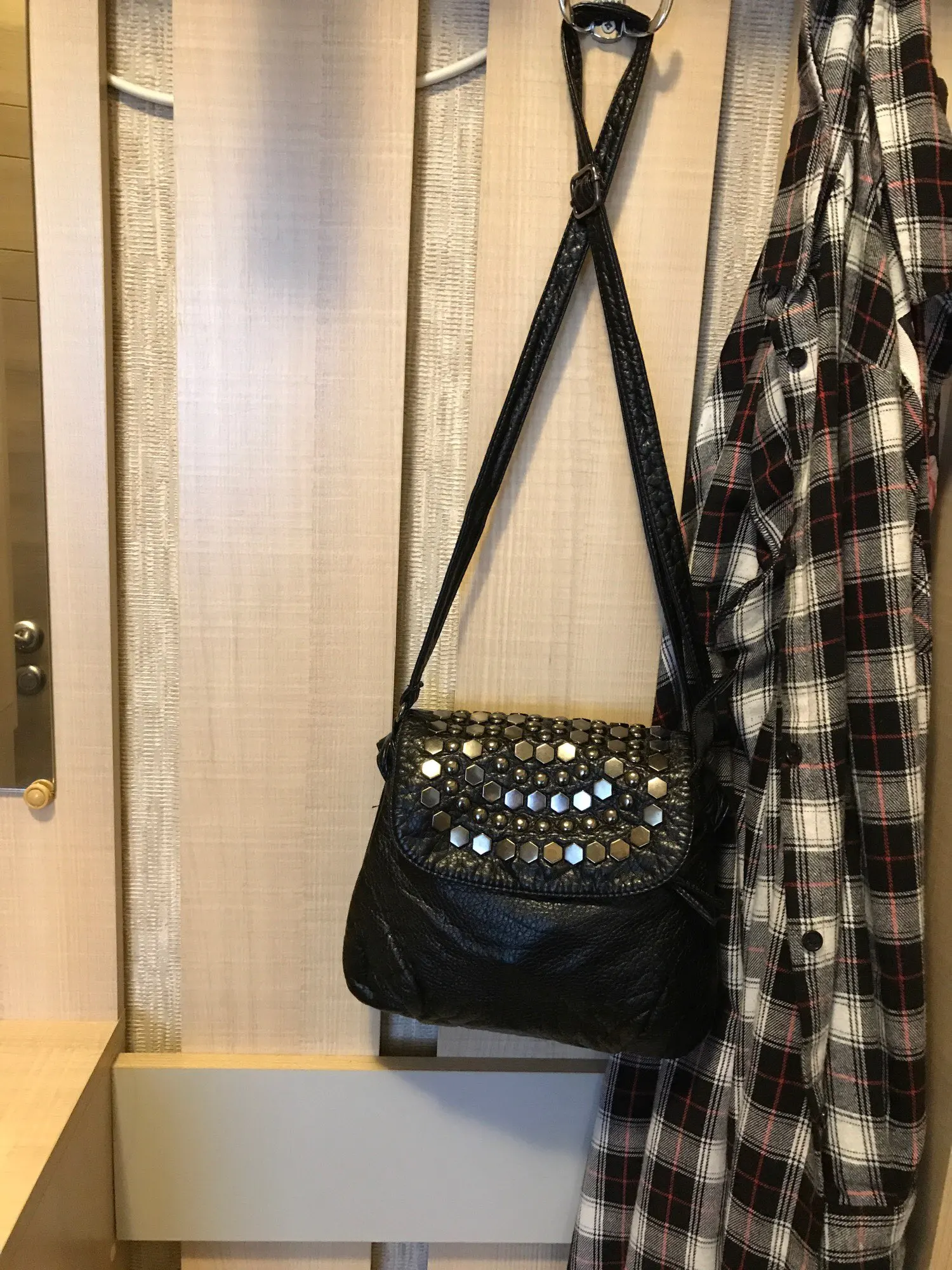 в помятом виде пока не пойму хорошо смотрится или нет, пару ниточек торчали, но ничего. замки исправны