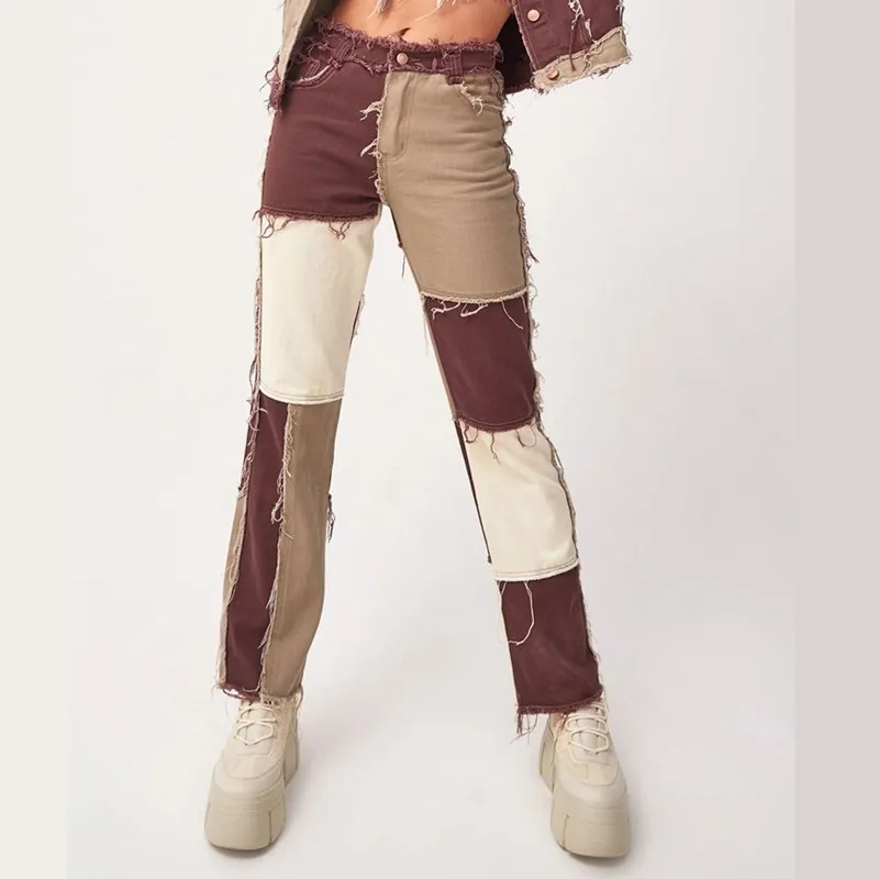Осенние женские разноцветные джинсы в стиле пэчворк, женские узкие ...