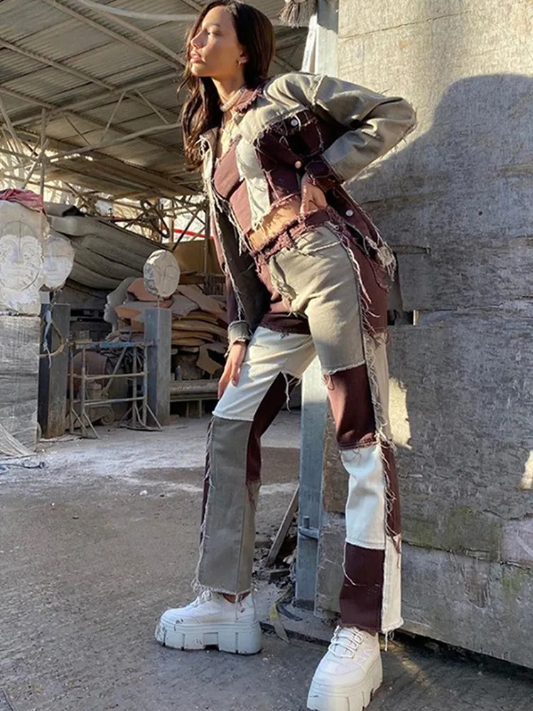 Джинсовый стиль пэчворк для женщин мешковатый винтажный Размер в ст...