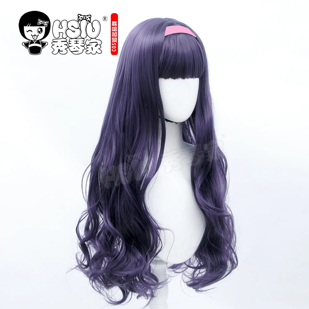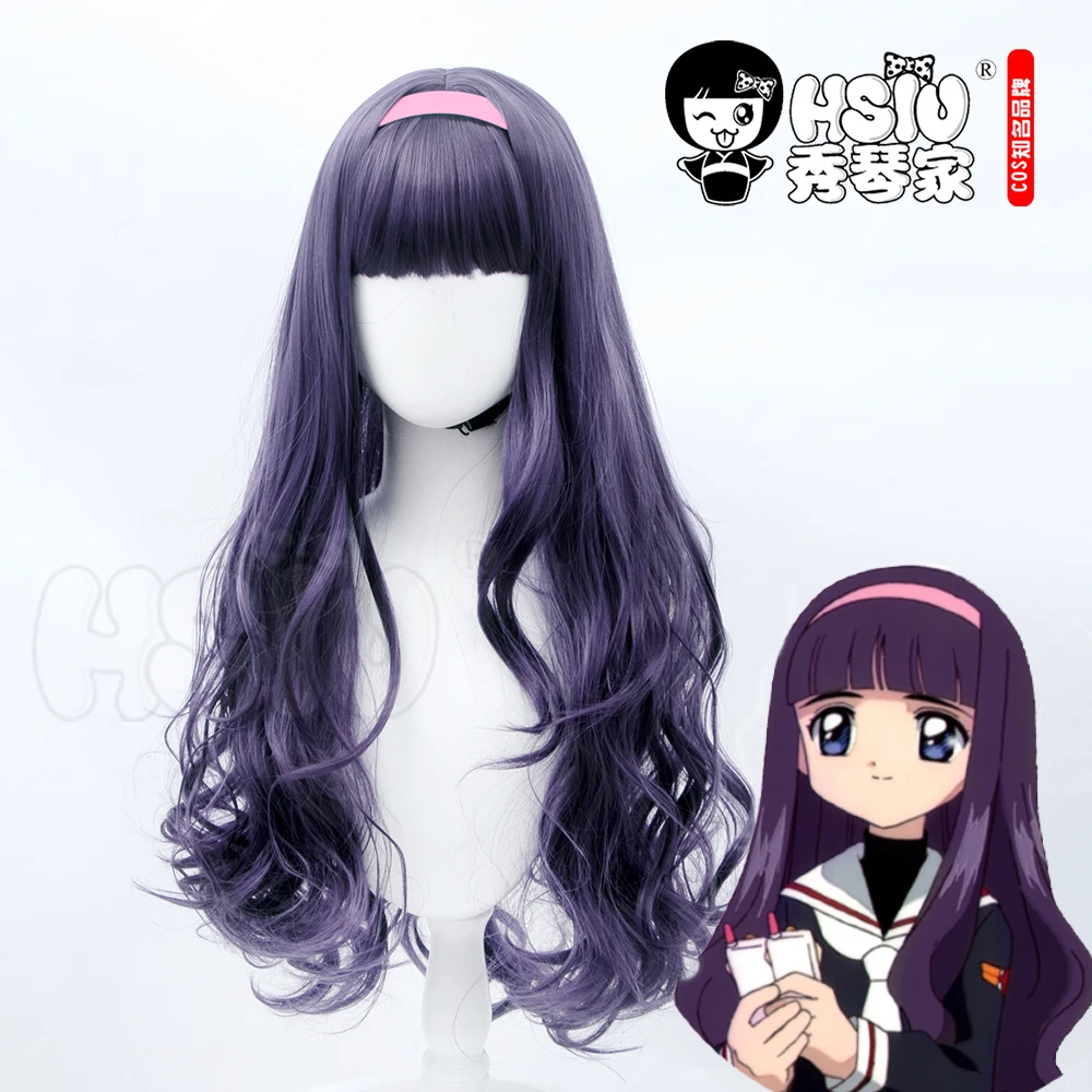 Парик для косплея Tomoyo Daidouji, с длинными вьющимися волосами черного, фиолетового цвета, с шапочкой