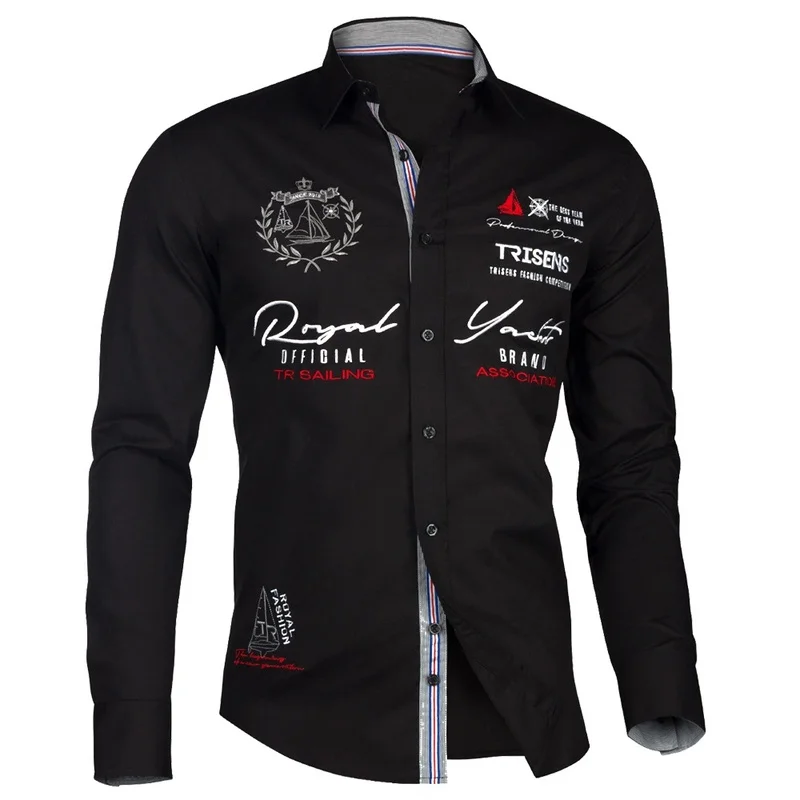 ZOGAA Летние повседневные мужские рубашки с длинным рукавом, с буквенным принтом, топы, черные, белые повседневные приталенные мужские классические рубашки, размера плюс