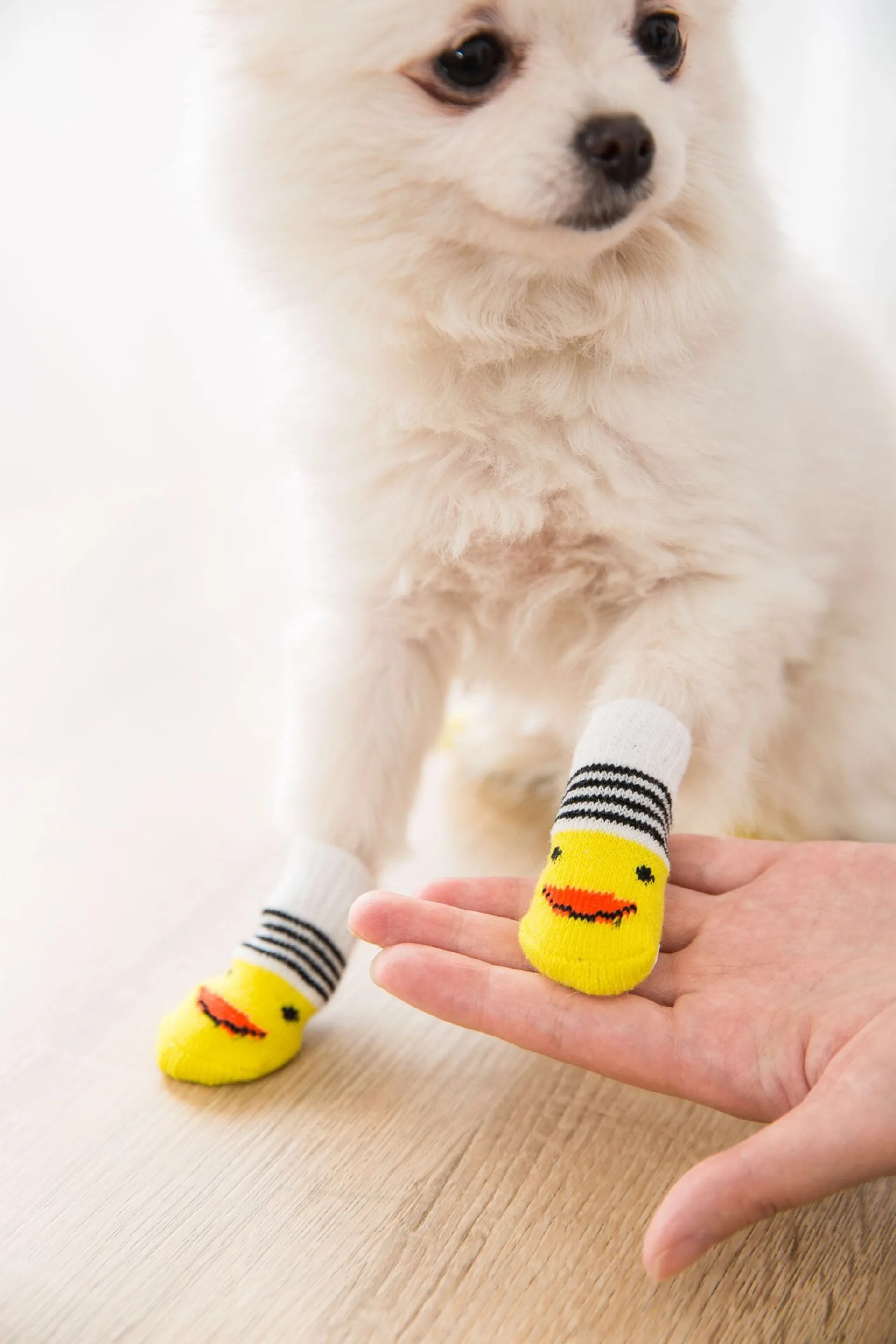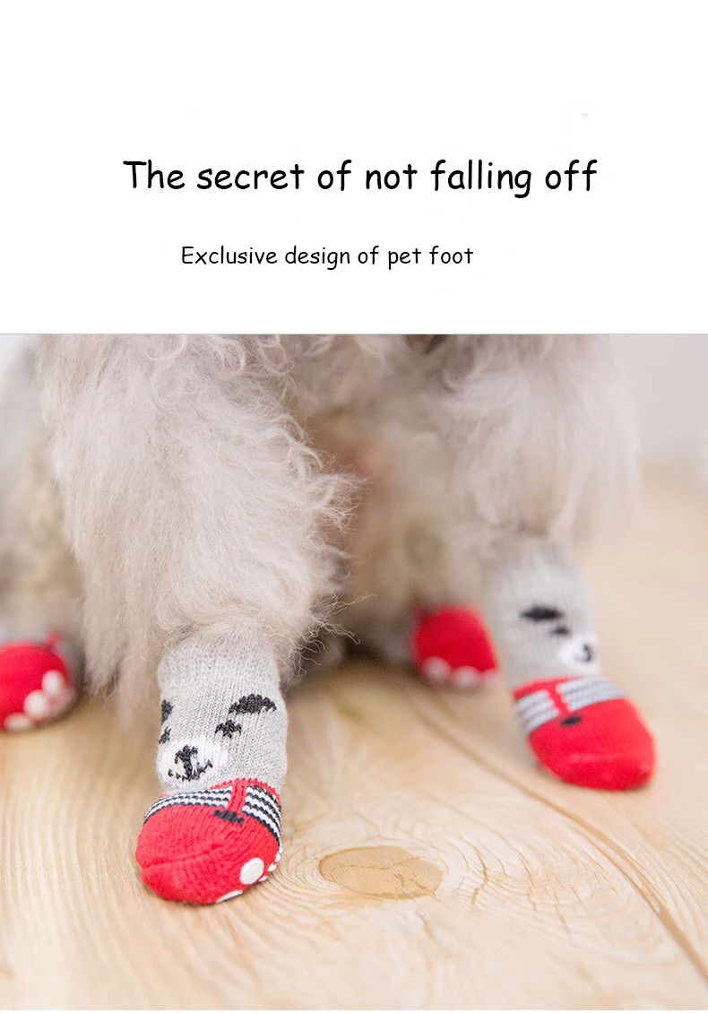Хит, 4 шт.компл. милый щенок собака вязаные носки маленькие собаки чихуахуа для детей более старшего возраста хлопковые нескользящие Обувь для кошек для весны домашние тапочки без застежки в виде лап протектор
