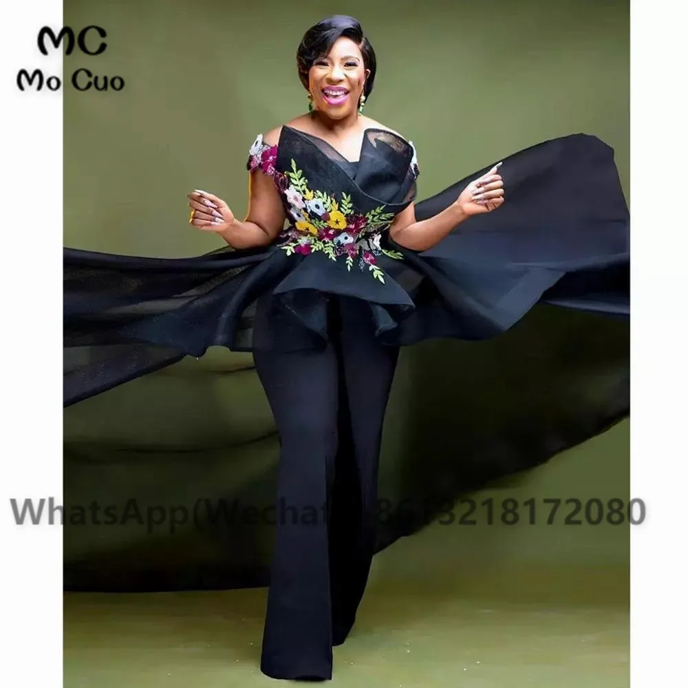 2021 черный комбинезон без бретелек с оборками Вечерние платья с аппликациями со съемным шлейфом женское вечернее платье эластичное атласное платье для выпускного вечераТкань