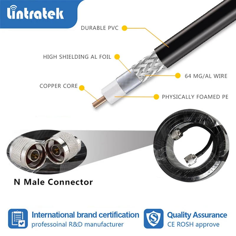 Коаксиальный кабель Lintratek, 10-30 м, 5D, 50 ом, штекер-штекер N, для усилителя сигнала 2G, 3G, 4G, мобильный телефон