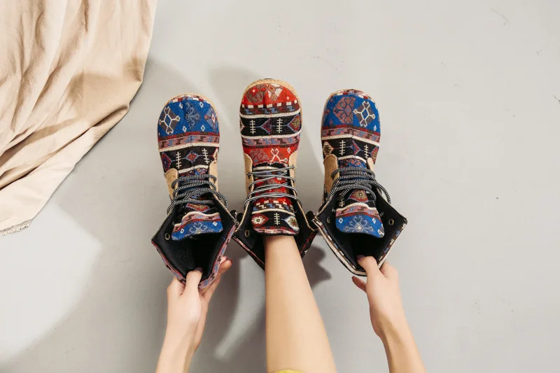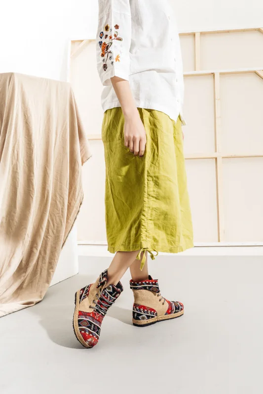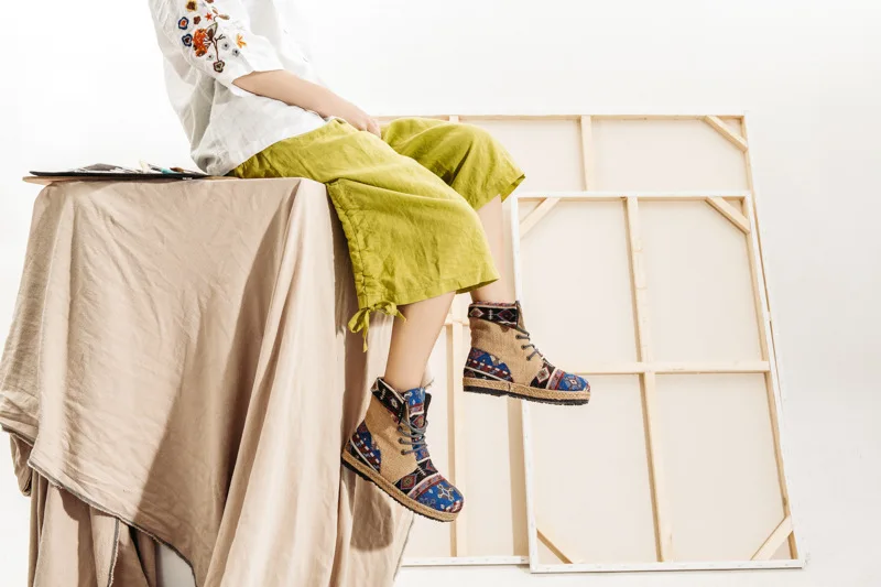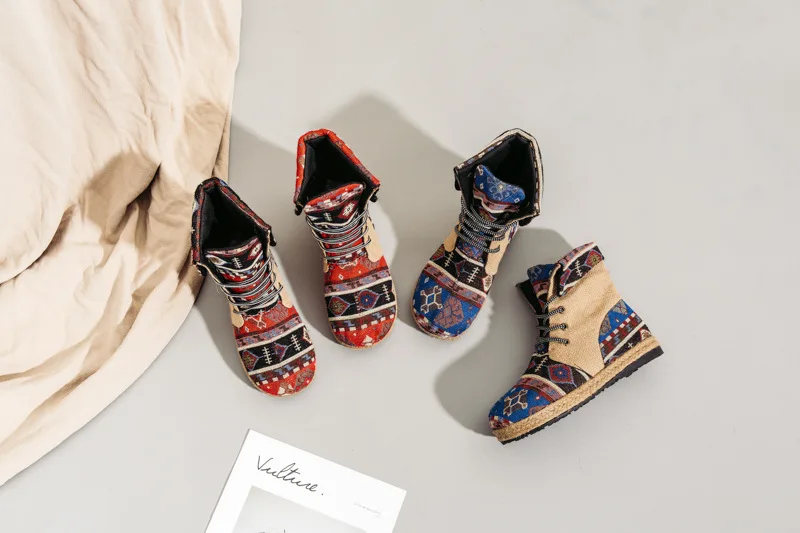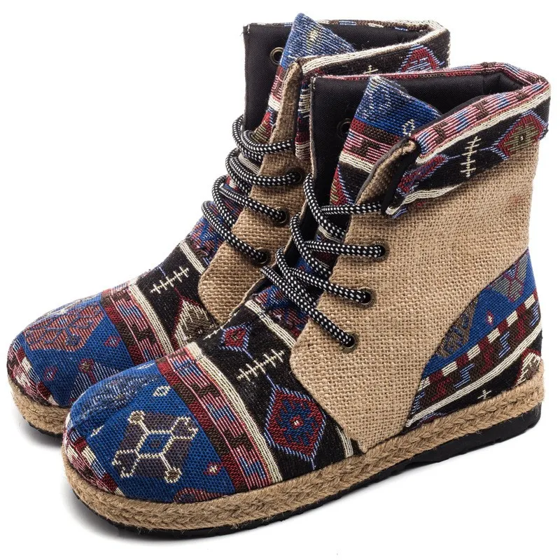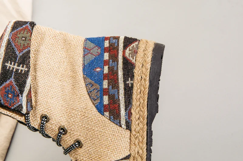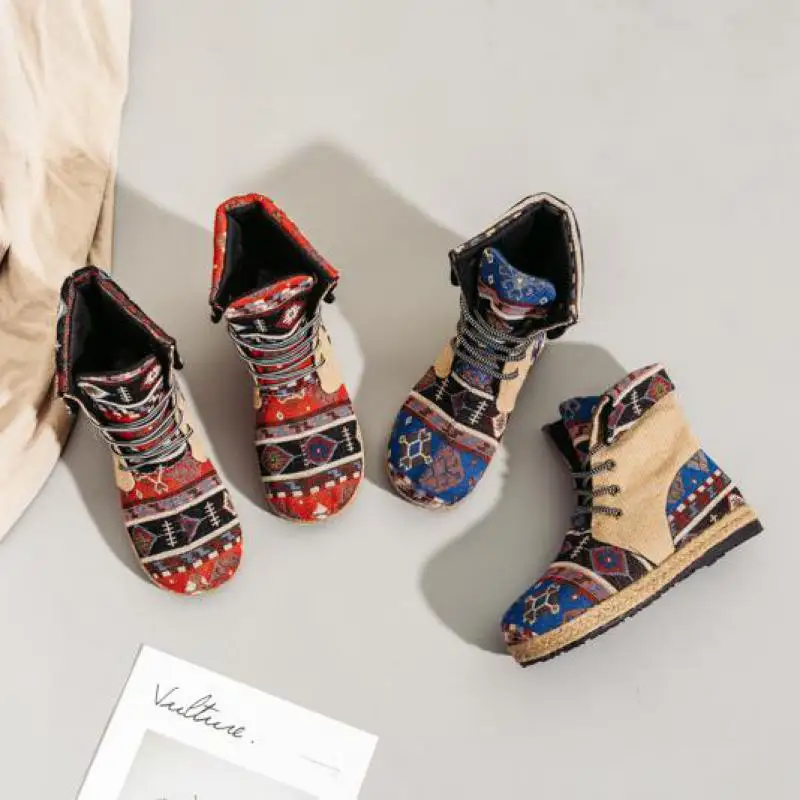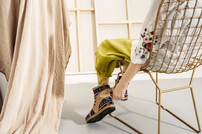 Женские ботинки в стиле ретро Johnature, ботинки из хлопка и льна на плоской подошве, с круглым носком, на шнуровке, в национальном стиле, разные цвета, 2022
