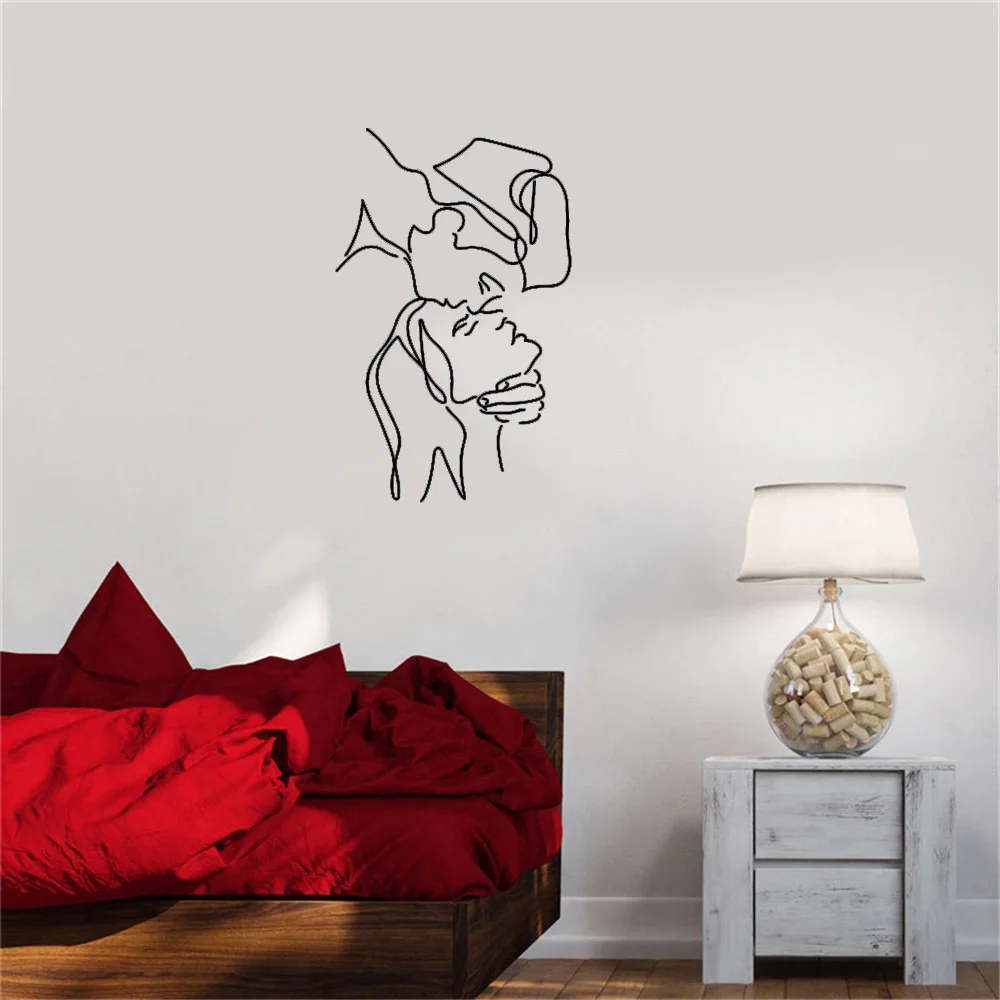 Скандинавские фигуры Ins, линейная художественная наклейка, романтическая парная наклейка с поцелуями, наклейка на стену для гостиной, спальни, виниловая роспись ph731