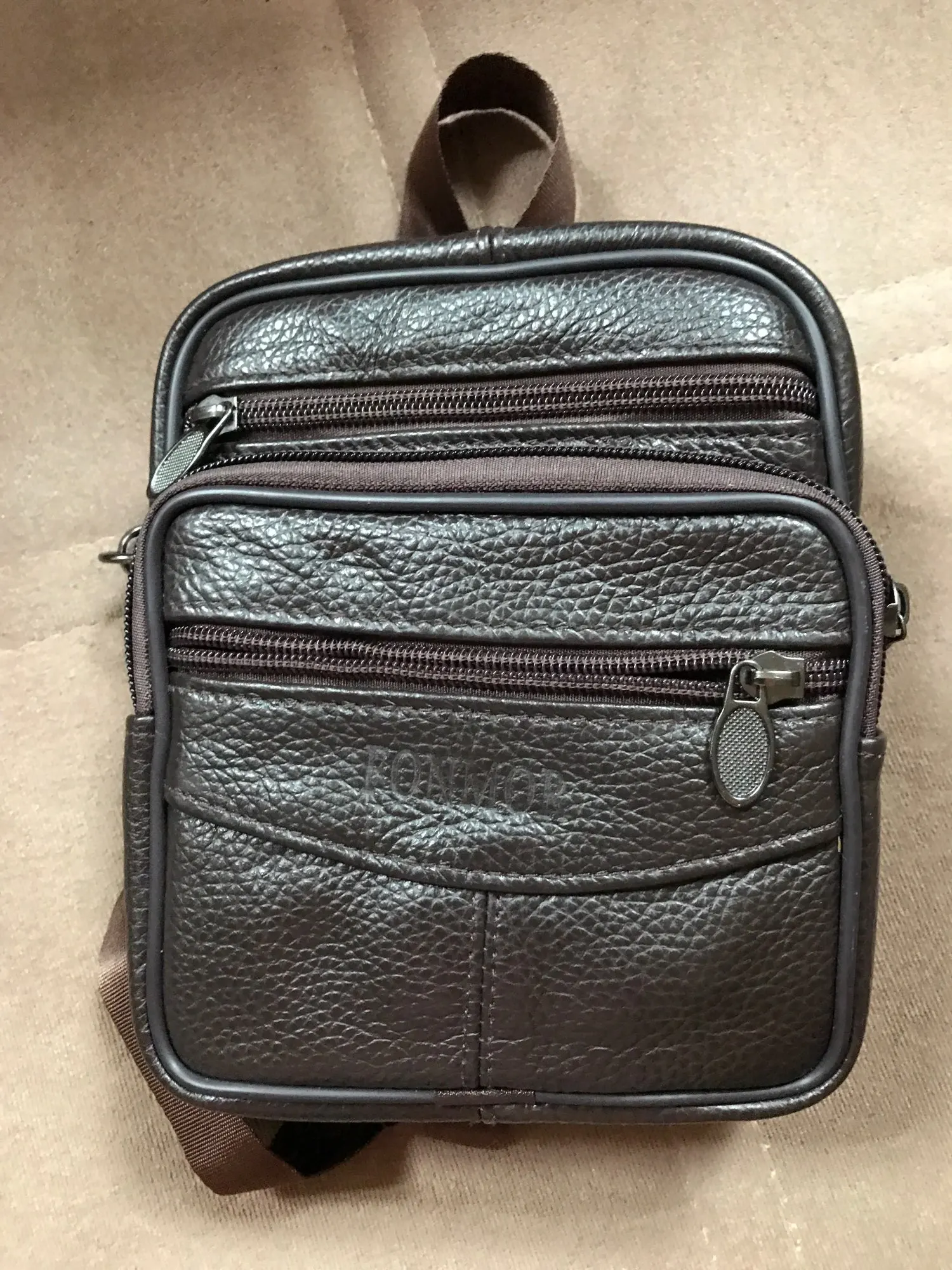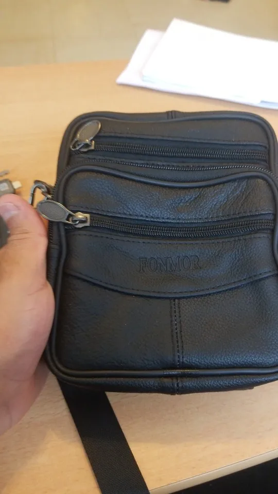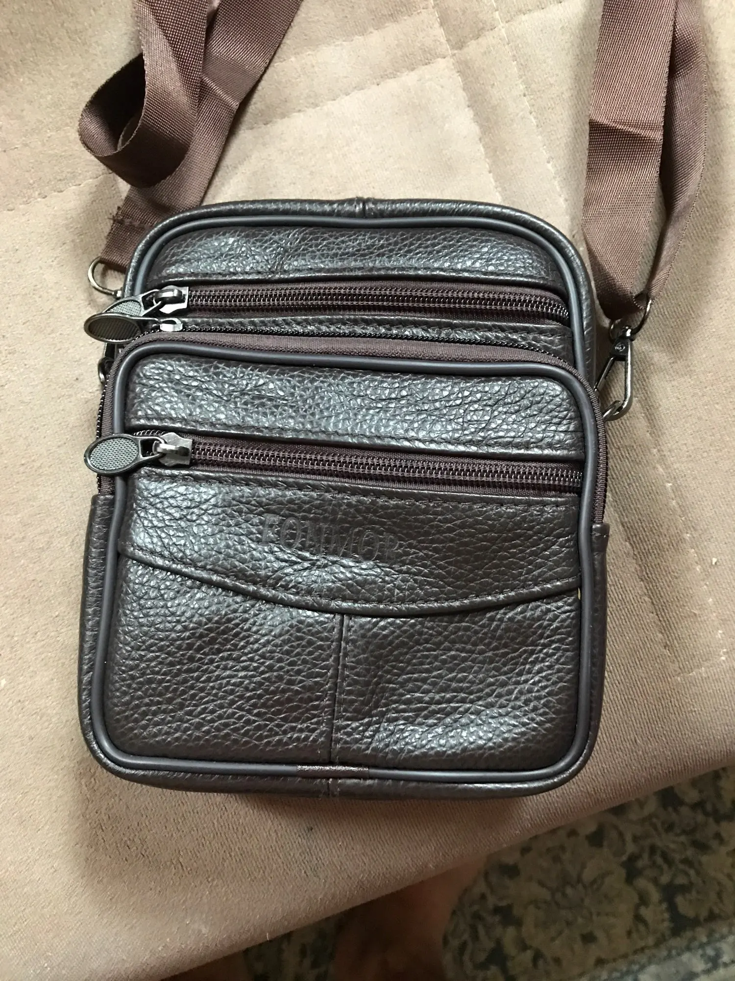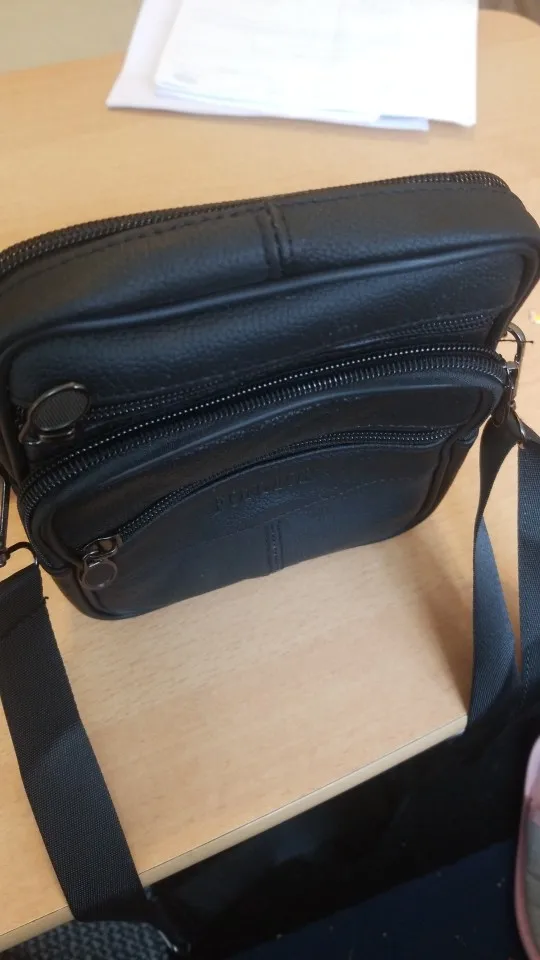 посылка пришла очень быстро - до Калужской области менее 7 суток. Сумка действительно из натуральной кожи (я до последнего думал, что будет кожзам). К качеству пошива можно придраться, но учитывая стоимость товара делать этого не буду. Сумку можно крепить как к брючном ремню, так и носить на плече. Наплечный ремешок из дешёвой ткани и немного портит впечатление от товара. Также выбрал эту сумку, потому, что в ней 4 кармана - это удобно, чтобы документы, ключи, телефон, деньги все хранилось отдельно. Учитывая все вышесказанное, а также скорость доставки и цену ставлю твердую 5 сумке и продавцу.