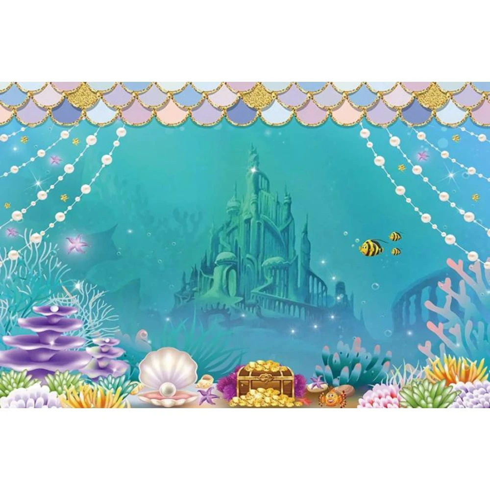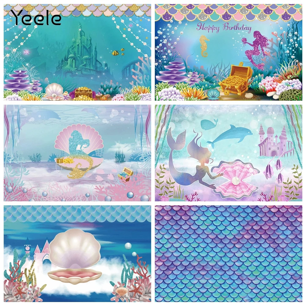 Yeele на день рождения в стиле Русалочки с весы сокровище жемчуг фон для фотосъемки с изображением фотографические украшения Фоны Фотофон для студийной съемки