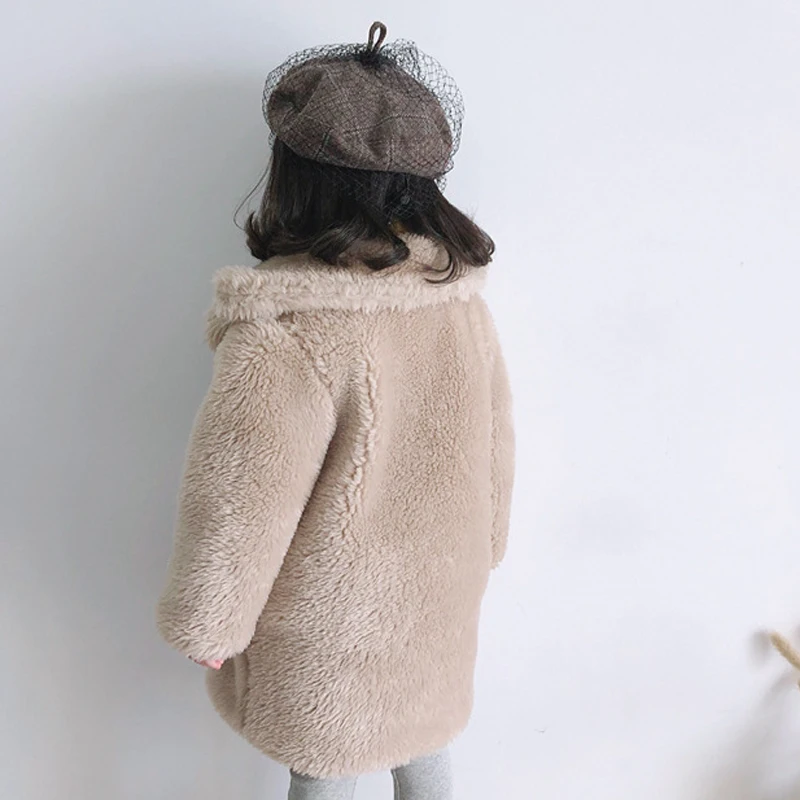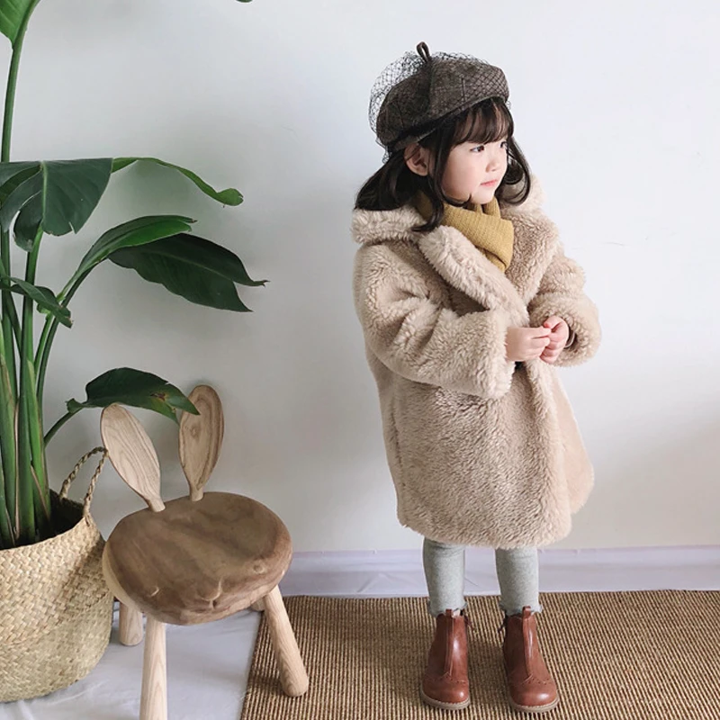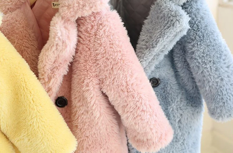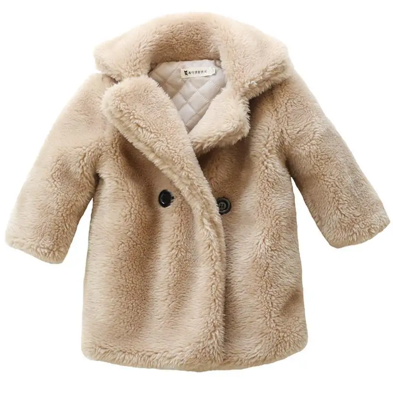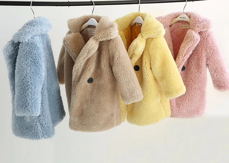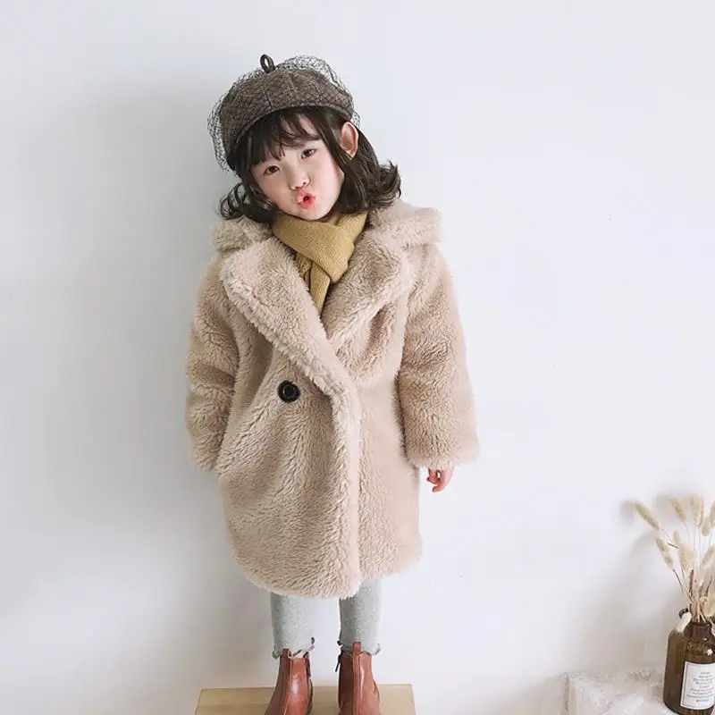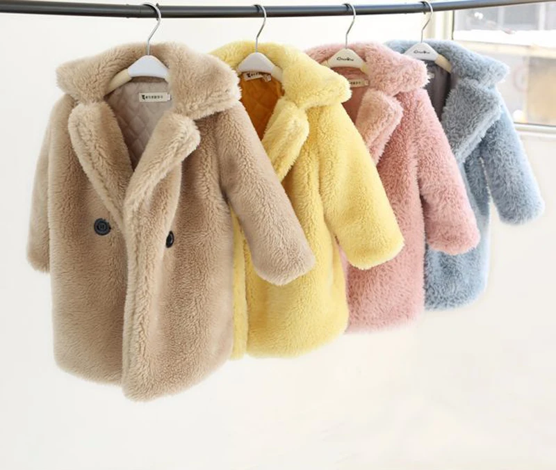 Зимние шерстяные куртки для девочек, пальто из искусственного меха ...